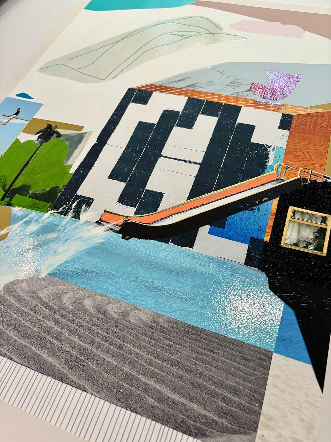 Giclee, screenprint glazes and glitter collage element on Somerset paper.
