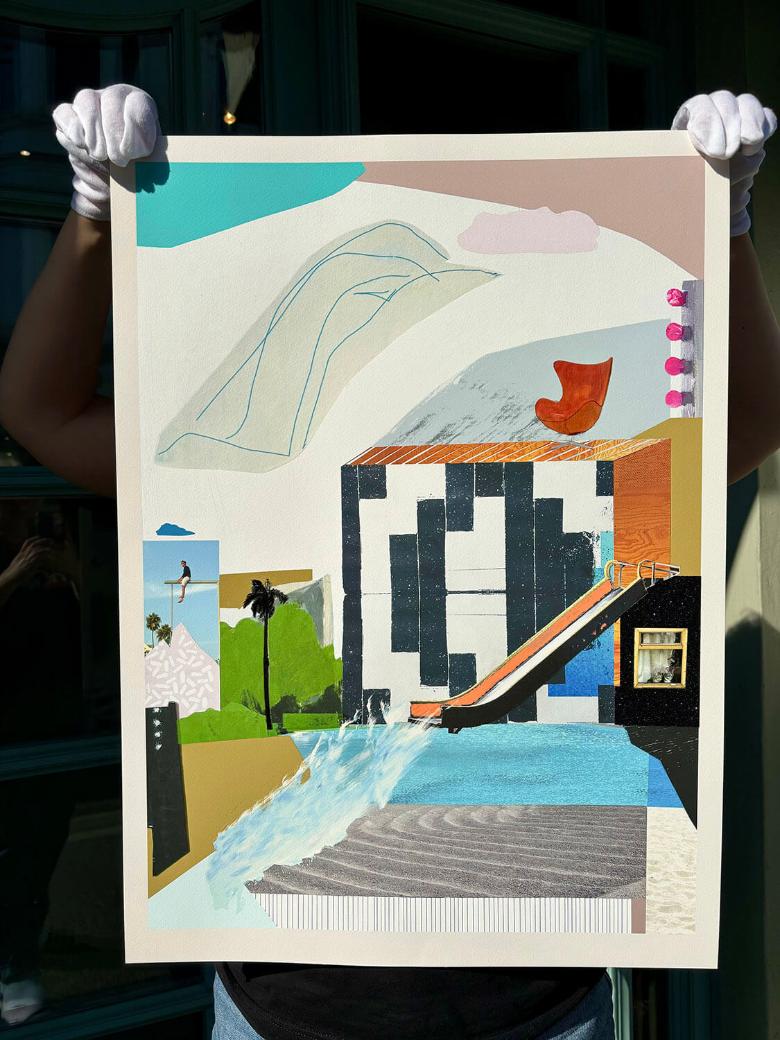 Bonnie and Clyde is a Brighton based artist who uses collage, type and photography to produce visually arresting screen-prints and mixed media collages. She studied Furniture and 3D Design at Kingston University before setting up her own graphic design business in Manchester, working primarily within the creative industries, creating everything from posters, brochures, book sleeves and tee-shirts to textiles and festival campaigns.