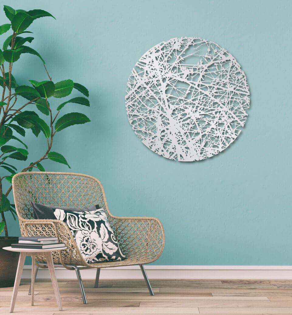 Digitally cut in powder-coated steel. Fixings on reverse ready for installation.