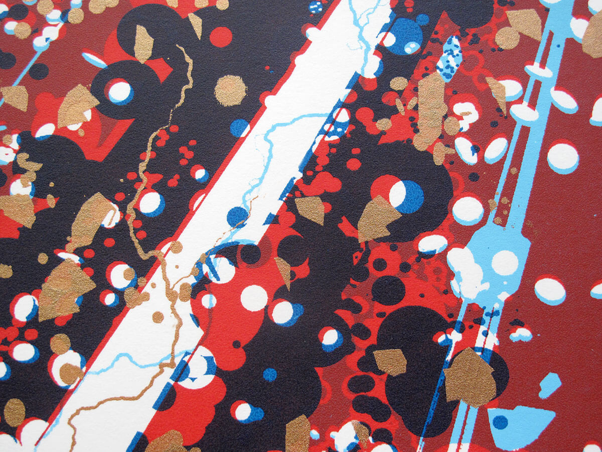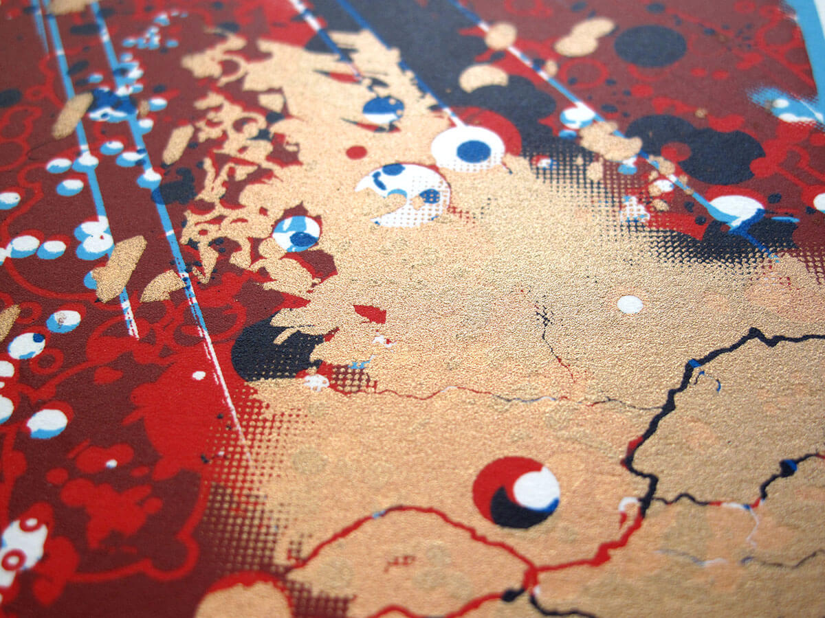 Four colour screenprint with metallic bronze ink, printed on Southbank smooth 250gsm paper.