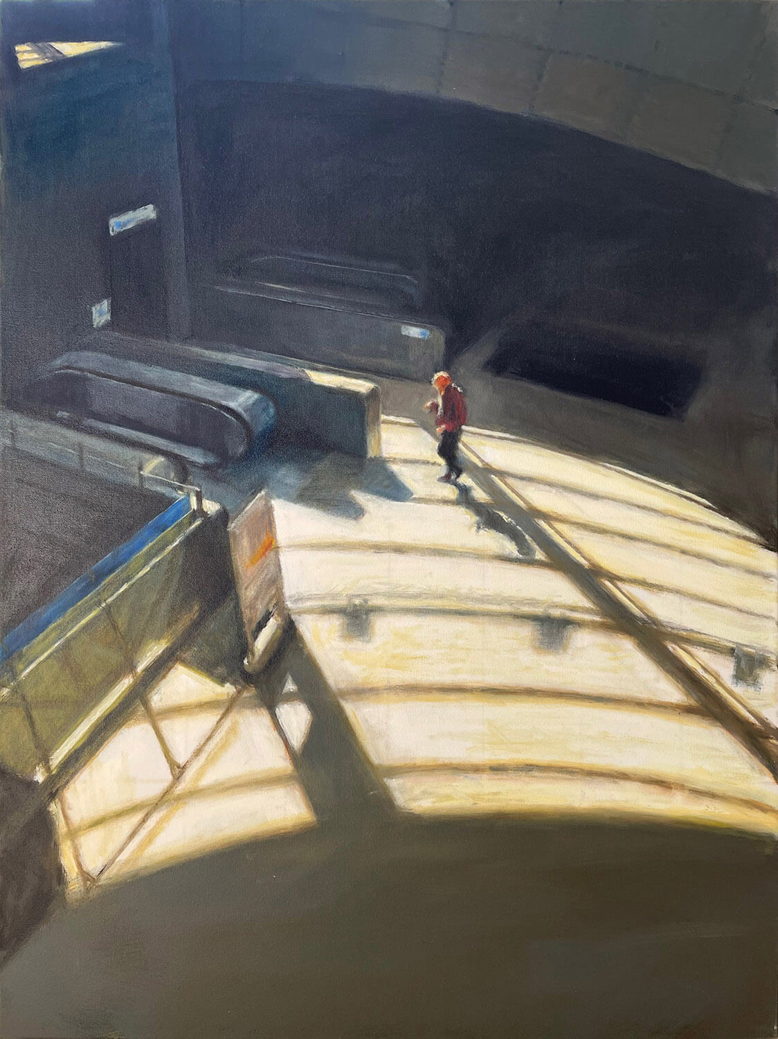 +In Anna Simmons' words: I have always been interested in light and how it can transform a dull or ordinary scene and make it beautiful. I like to paint the drama of light shining in a dark place. I paint urban landscapes and the interior of buildings; public spaces in cities within which a personal illumination occurs. I have always been fascinated by the play of light and dark.