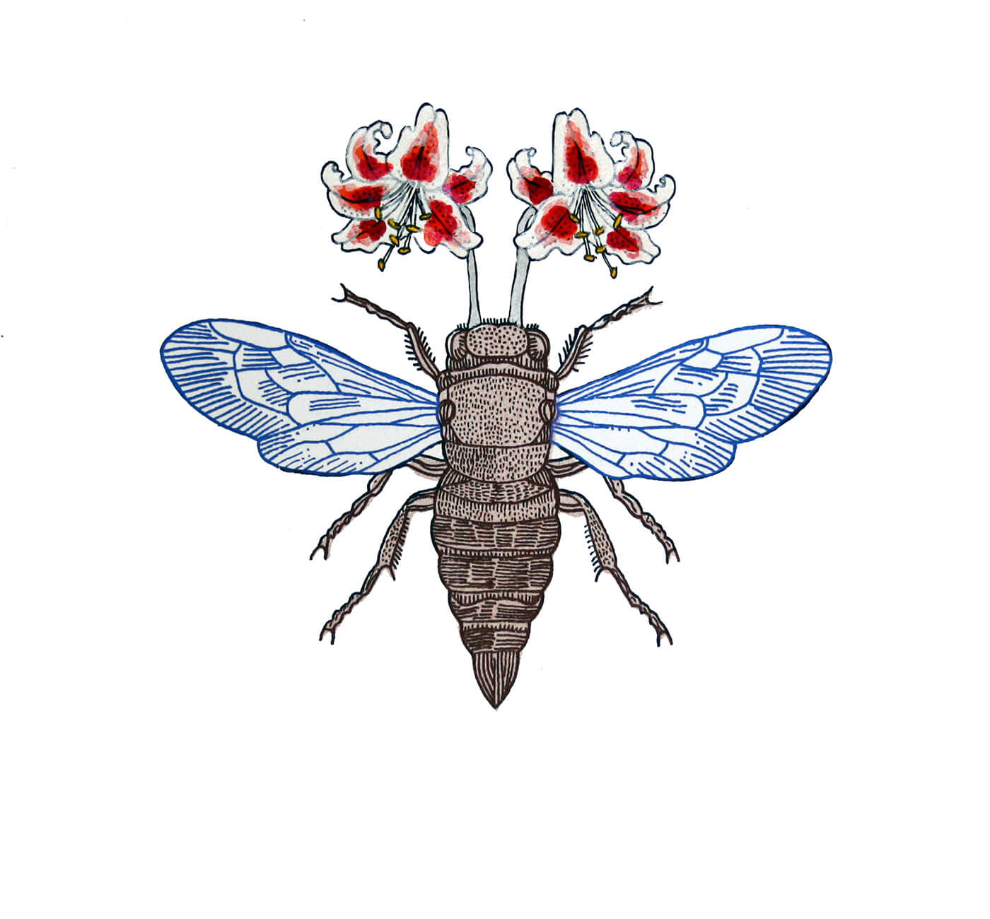 Screenprint with metallic and interference inks, and hand detailing.