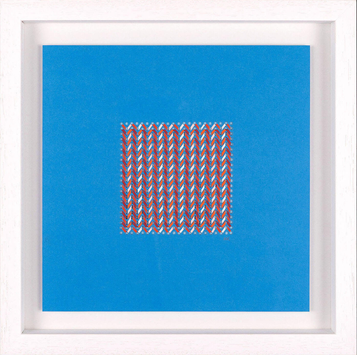 Float mount and white frame with standard glass.