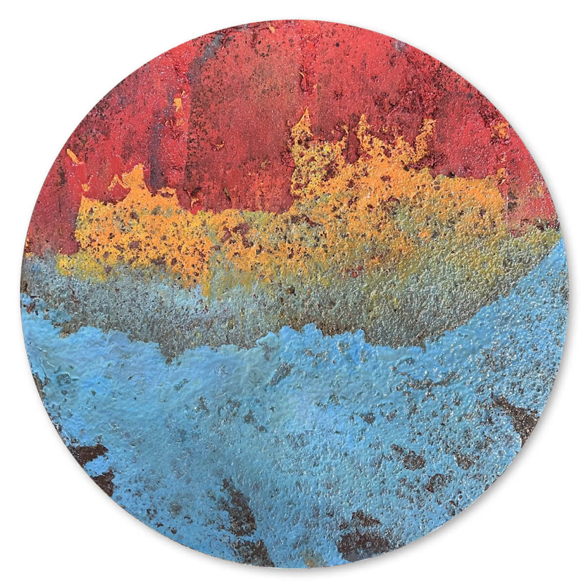 Experimenting with the balance of colour and light on steel over the last 30 years and exchanging the traditional paintbrush for a roller and a blow torch, Peacock’s unique take on art has propelled his career. Peacock's CV includes independent gallery shows through to extensive interior design projects and large scale art installations for prestigious hotels, as well as a public installation commissioned by Islington council. This commission stands 8 metres tall cladding brick work with steel and colour, letting the light reflect off the surface of the steel and providing an ever-changing landscape.