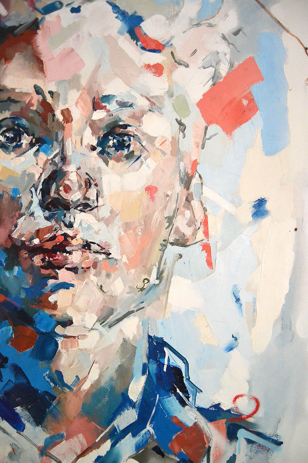 Emotions, experiences and struggles. My aim is to convey these feelings via contemporary art, creating dynamic, vivid images. My love for texture, method and material helps me capture these emotions. I am passionate about using my art to celebrate unique and interesting people. Highlighting and embracing those who may normally be overlooked or criticised for being different. We live in a society where the abnormal is laughed at and my aim is to alter these outdated views. Art can be the most innovative and compelling form of providing change within our society. I challenge the viewer, encouraging them to look deeper into the painting than just the portrait itself, to raise internal issues and try to comprehend them.