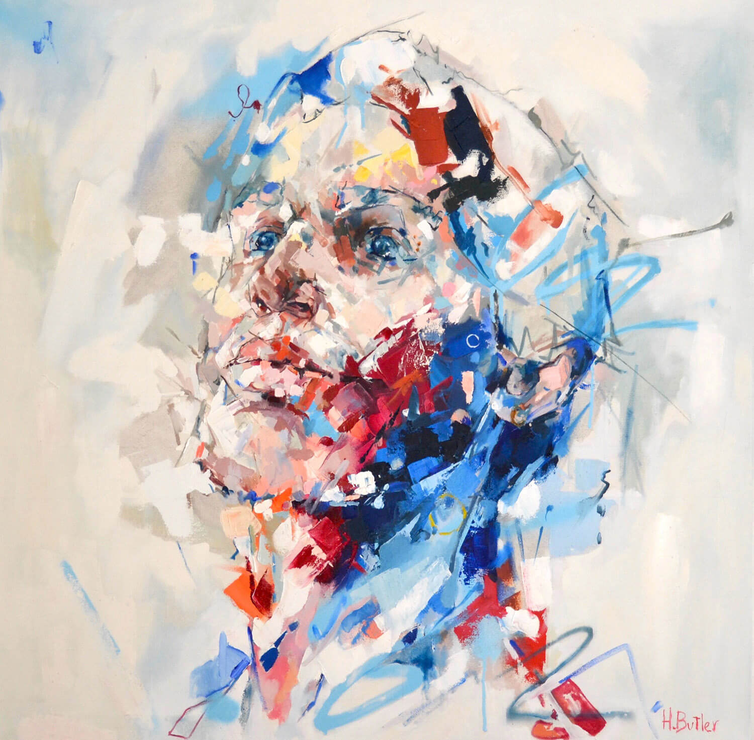Emotions, experiences and struggles. My aim is to convey these feelings via contemporary art, creating dynamic, vivid images. My love for texture, method and material helps me capture these emotions. I am passionate about using my art to celebrate unique and interesting people. Highlighting and embracing those who may normally be overlooked or criticised for being different. We live in a society where the abnormal is laughed at and my aim is to alter these outdated views. Art can be the most innovative and compelling form of providing change within our society. I challenge the viewer, encouraging them to look deeper into the painting than just the portrait itself, to raise internal issues and try to comprehend them.
