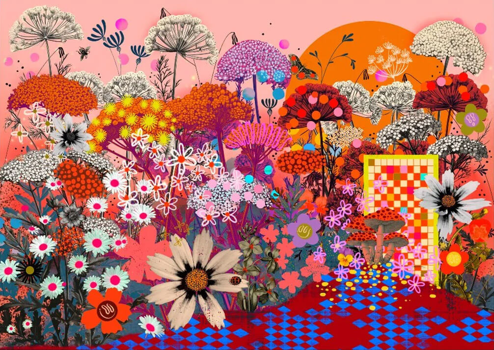 As well as producing original works and prints, Victoria is proud to be Artist Director of On The Corner Records undertaking everything on the visual side of the label. She has also had the privilege of working with Art Yard Records on Sun-Ra. Along side this she has created commercial work for brand identities; produced branding for festivals; large scale murals and has also designed nightclub interiors. In addition, she also works on historic interiors – digitally recreating wallpapers for some of the most prestigious heritage sites in the UK.