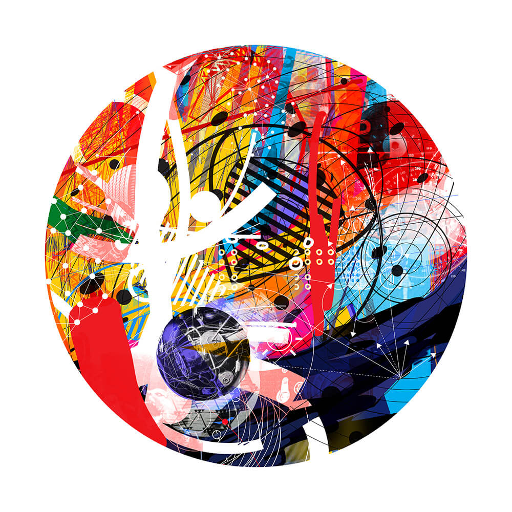 He refers to his digital pieces as ‘pop expressionist collision collages’, referencing their energy and impact with colours and shapes exploding onto the paper. ‘(Insert title here)’ was accepted into the prestigious Royal Academy Summer Exhibition 2013.