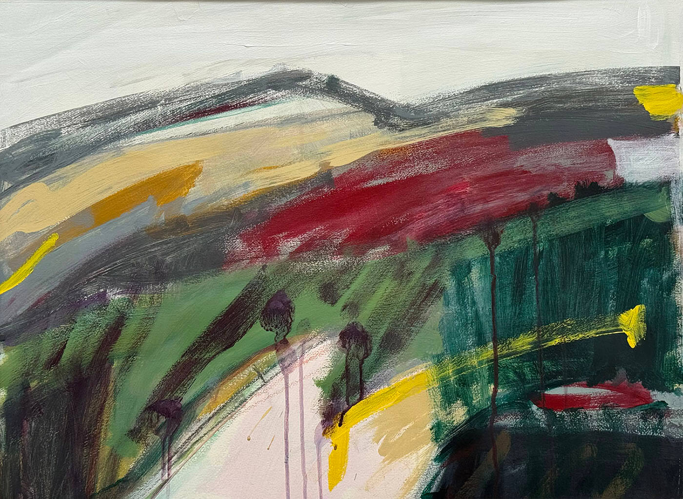 In Julia Wilson's words: “The paintings are a reaction to my surroundings, a spontaneous re-working of memory and history, things seen, past and present. The starting point may be an outlook from my studio window, an interior space, or a familiar estuary landscape. The works are not abstract, in the formal sense, but are drawn from a visual experience.”