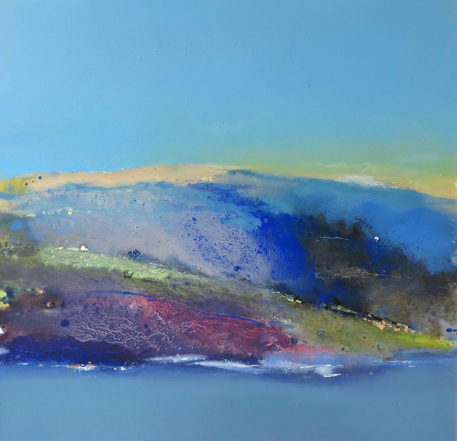 Sketches on location form a starting point for her canvases and through distortion, exaggeration, poured paint, thick texture, smooth brushstrokes and incidental marks the canvas becomes alive with energy and atmosphere. Serene calm is interjected with powerful explosions of colour to produce unique and captivating portrayals of nature in its wildest forms.