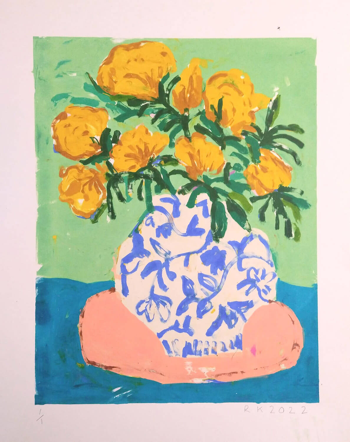 After many years exploring the fluctuating worlds of people in our ever-evolving cities in a series of vibrant prints, Rebecca has moved her focus towards a more hand-made process. This new series of still life works comprises original one-off monoprints many of which are then worked into in acrylic and pastel.