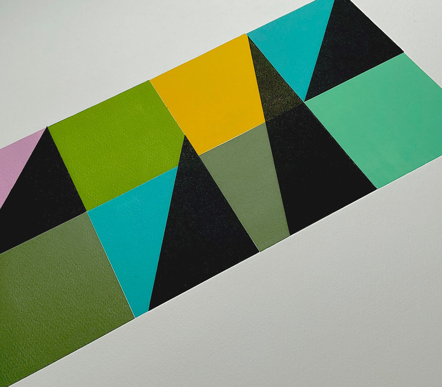 In Paul Minott's words: “Ultimately, my monoprints are all about experimentation. It’s like using an etching press to paint pictures in the dark; the magic that occurs between the blankets can never be entirely known beforehand, and one feels one’s way with each successive stage. Setting out with only a slight notion, often just a shape or a colour, one sets in motion a sequence of events that take on a life of their own. A finished print is resolved when the components coexist in either conflict or harmony. I never know which until it’s over, when it finally suggests something that was there all along.”