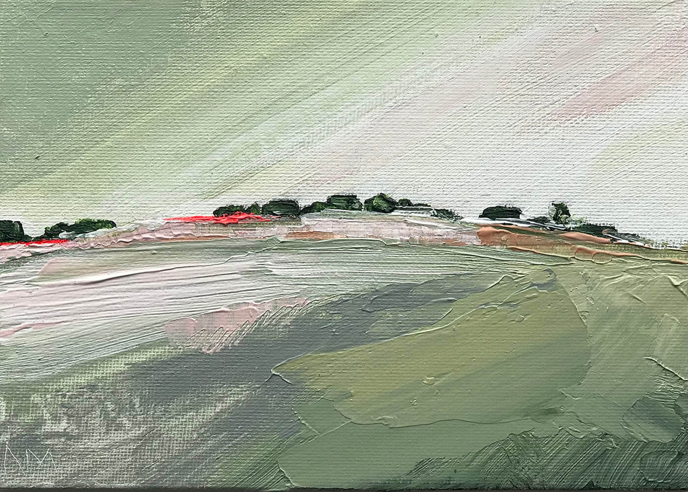 +Annabel has lived for nearly 10 years in Freshford, near Bath, and in that time has walked and explored her beautiful surroundings on a daily basis. She has become increasingly captivated by the ever-changing nature of the landscape and the views across rolling, undulating hills and valleys. The constant changes and perspectives that draw the eye out to the horizon have much in common with the sea and our magnificent coastline, which has been the focus of Annabel's practice for many years. As such, this newer exploration of landscape has felt like the natural progression of her work.
