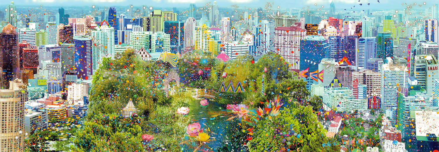 Rebecca King creates whirling patchworks of abstractions, where she is continuously trying to reinterpret what the image means within a fluctuating world of interchange. The work uses such viewpoints that the viewer is compelled to stand back and see the modern city in its speed and its immensity.