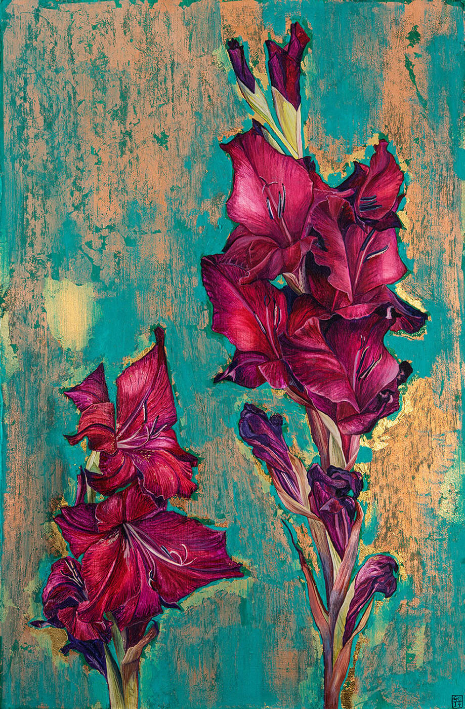 +Since graduating from Falmouth College of Arts in 1998, Bath-based artist Georgia Cox has achieved a reputation for her paintings of intricate flower compositions using oil and gold leaf.