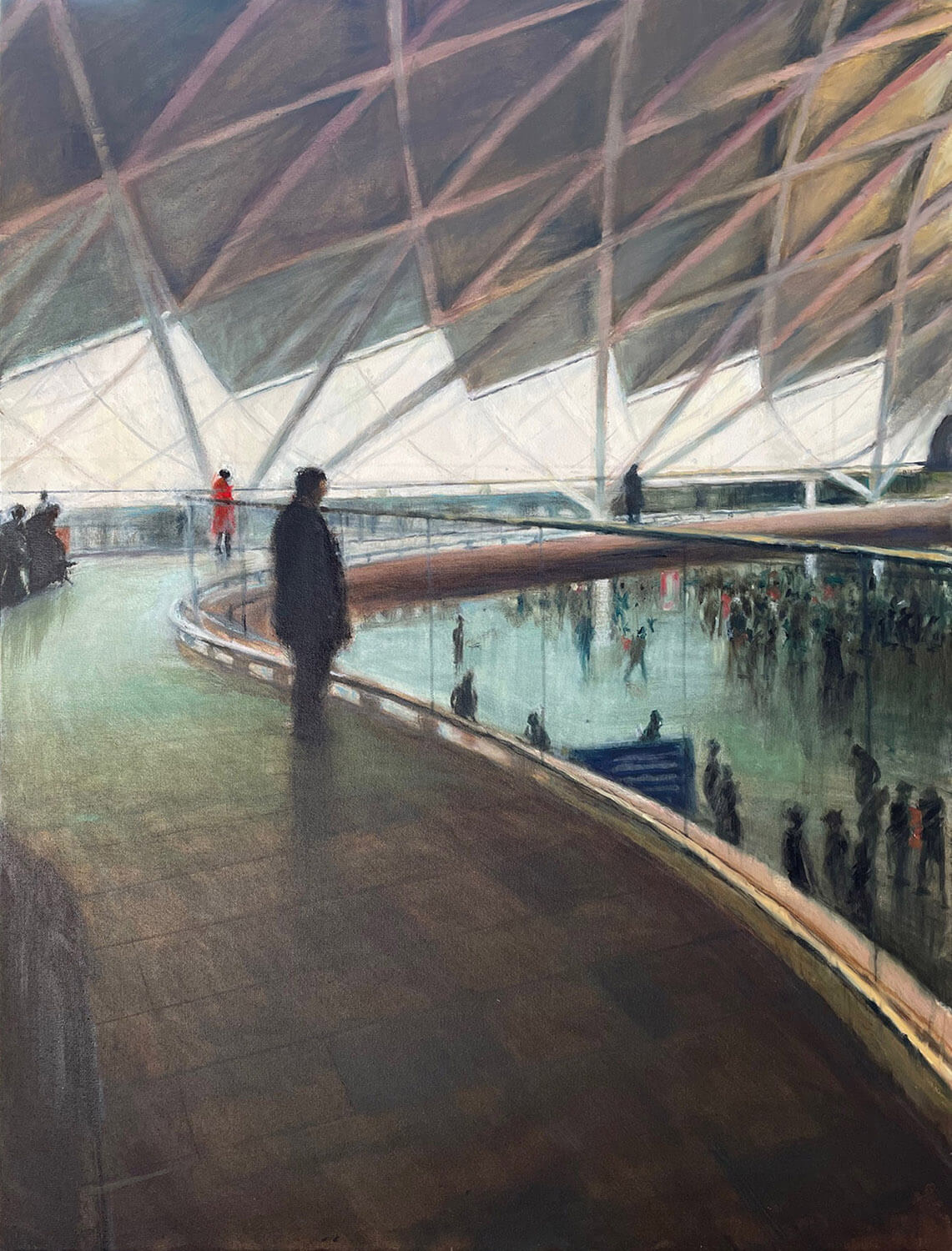+In Anna Simmons' words: I have always been interested in light and how it can transform a dull or ordinary scene and make it beautiful. I like to paint the drama of light shining in a dark place. I paint urban landscapes and the interior of buildings; public spaces in cities within which a personal illumination occurs. I have always been fascinated by the play of light and dark.