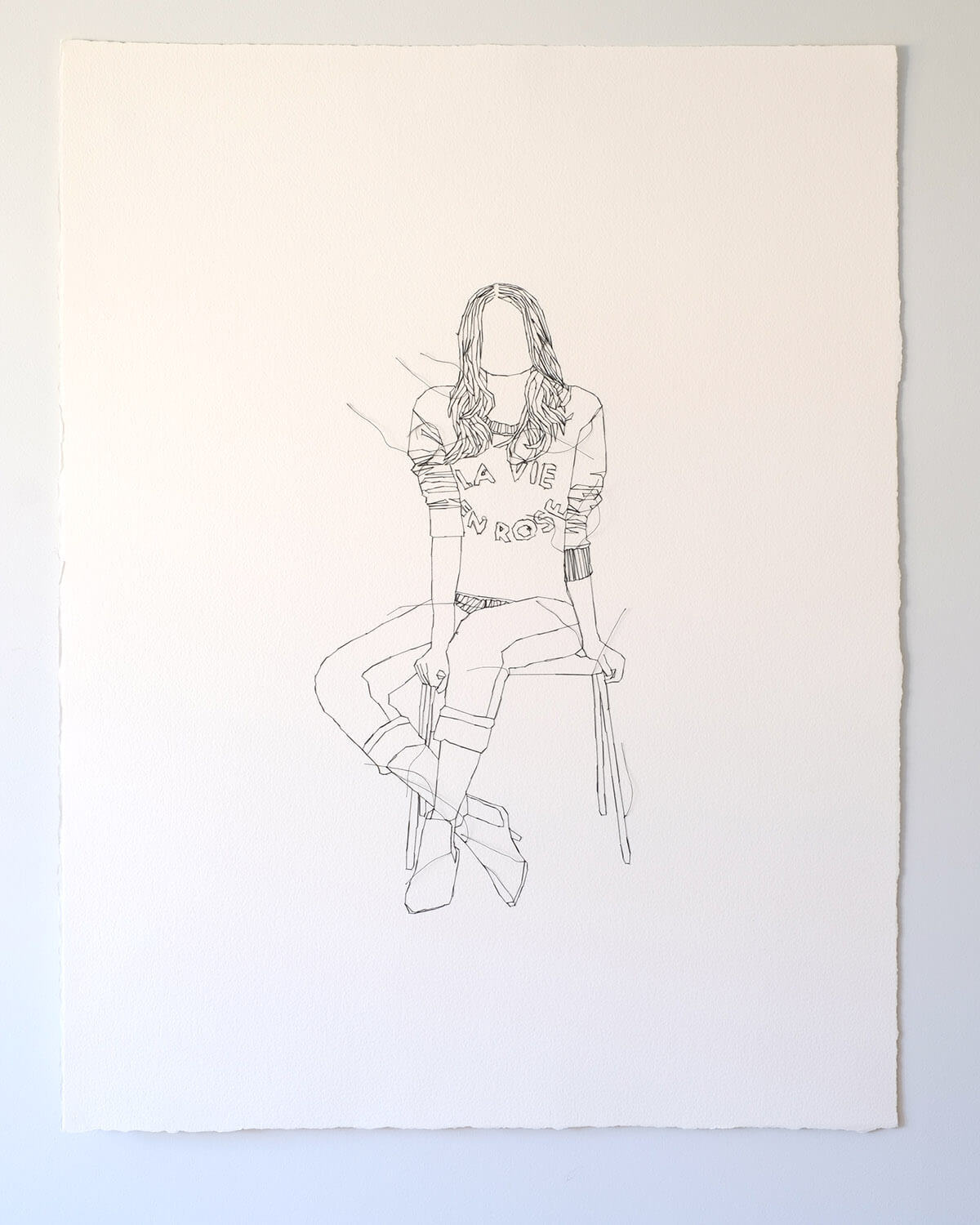 Unique 1/1 original hand-stitched illustration in black thread on paper.