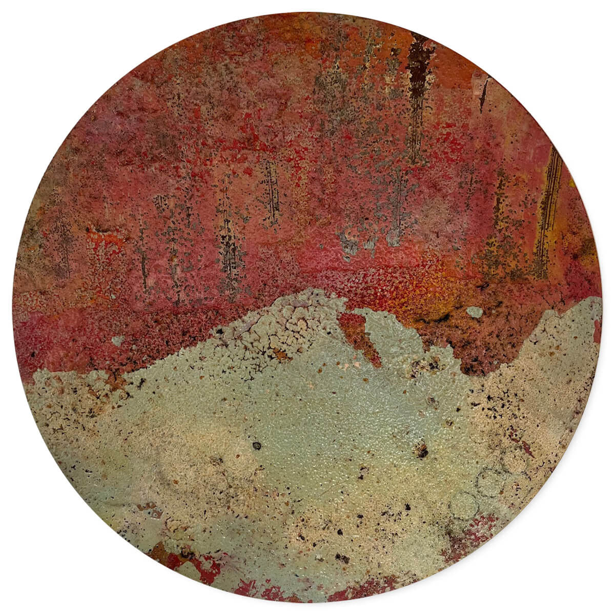 +Inspired by rural and coastal landscapes, Sam Peacock has challenged the traditional notion of landscape painting throughout every aspect of his work. Peacock's unique interpretation of the painting process involves the use of non-traditional oil based paints, varnishes, coffee grains and a variety of raw materials, combined and composed on a sheet of steel. Colour, a major aspect of the work, references the land itself with each palette being inspired by a specific physical location.