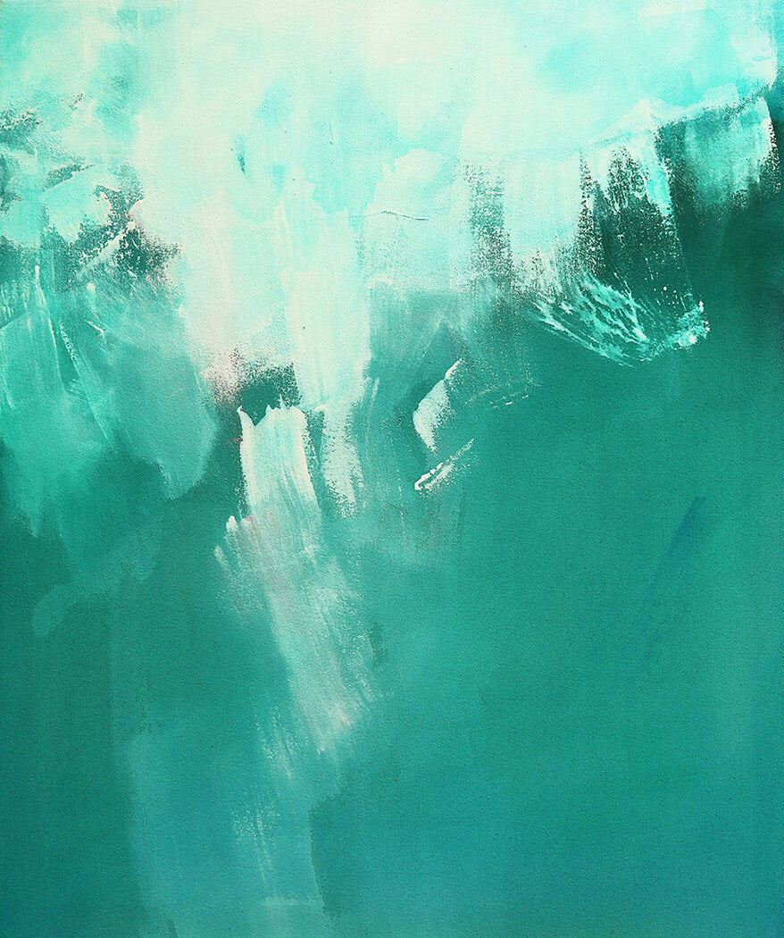 His recent work consists of large scale abstract landscapes on canvas and board alongside smaller more intricate studies on paper. His developed aesthetic is made up of dark weighty tones bringing depth and distance to the canvas. Accents of colour are skilfully used as compositional tools to entice the viewer to weave through layers and perspective.