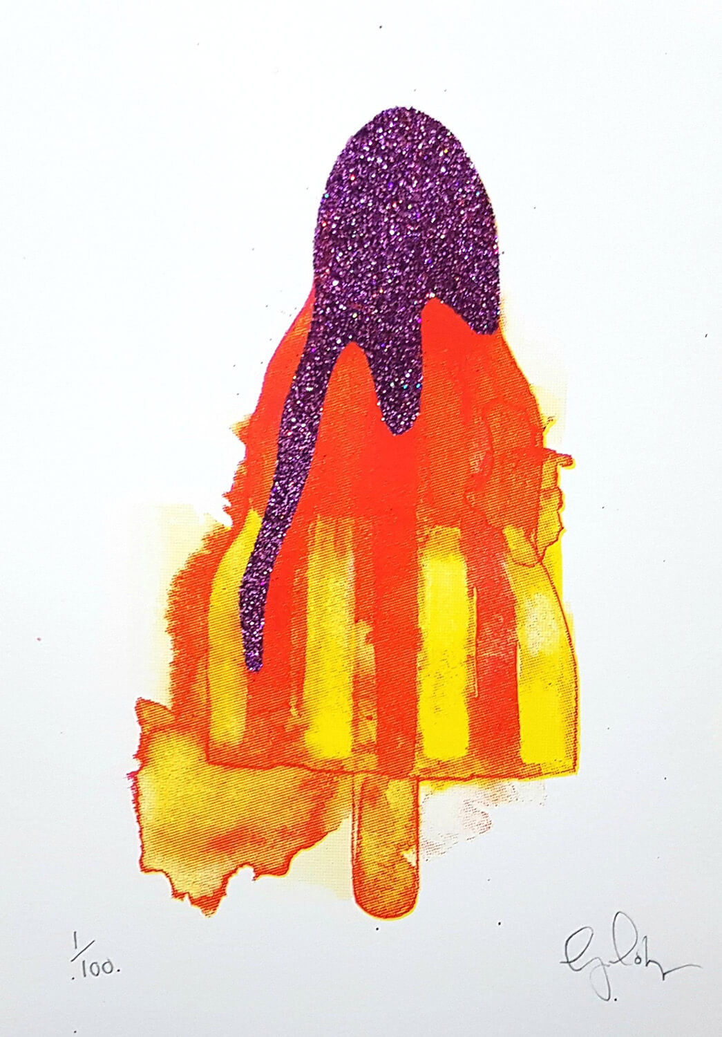Four layer CMYK screenprint with glitter layer on Fabriano paper in a limited edition of 100.