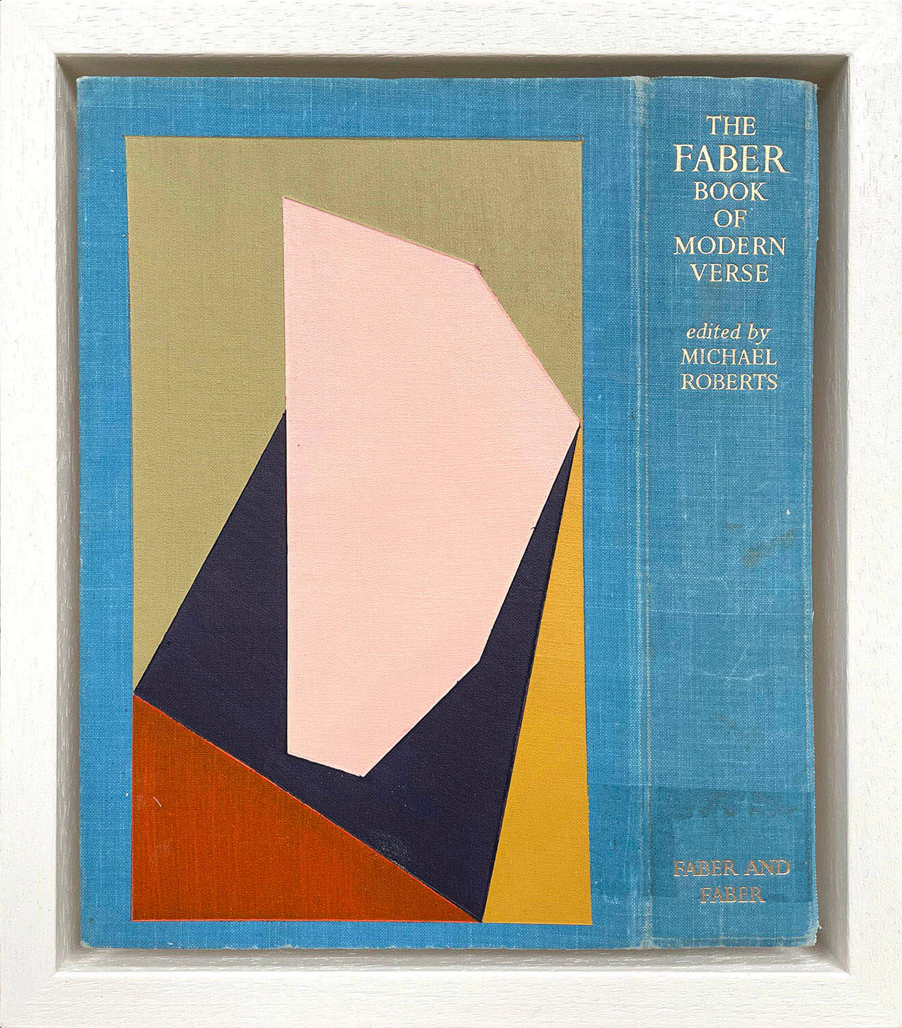 Acrylic on vintage book cover. Float mounted and framed with simple white frame.