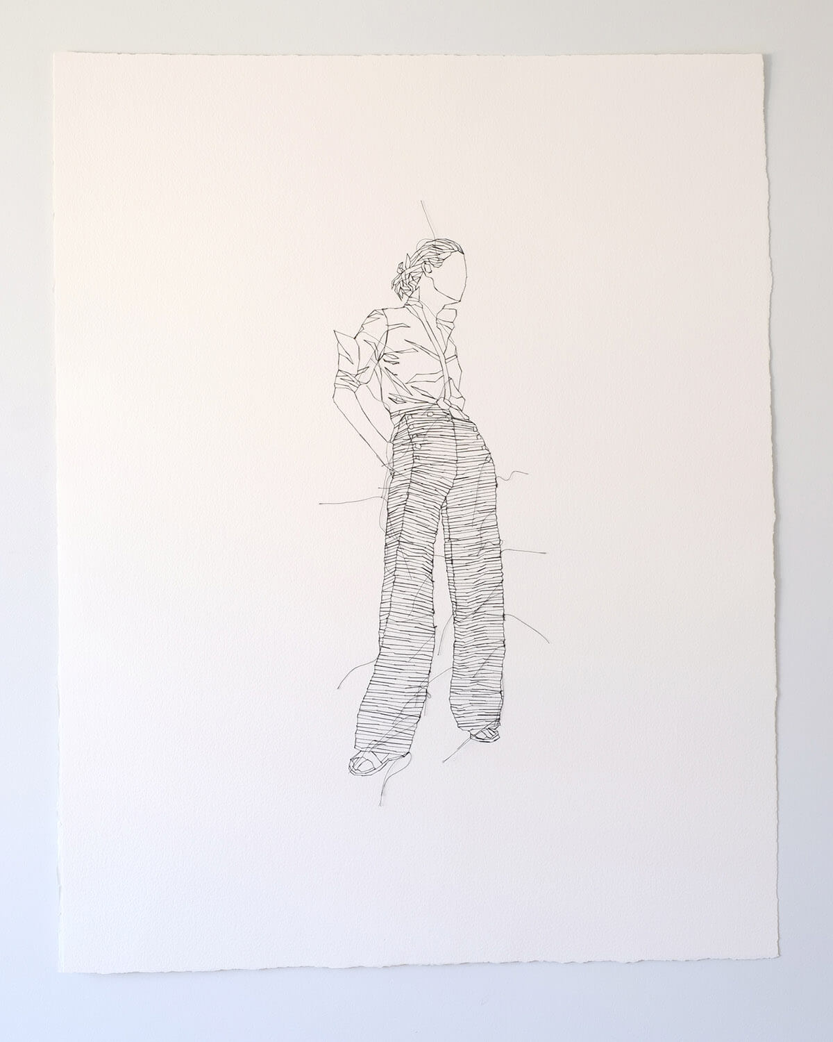 Unique 1/1 original hand-stitched illustration in black thread on paper.