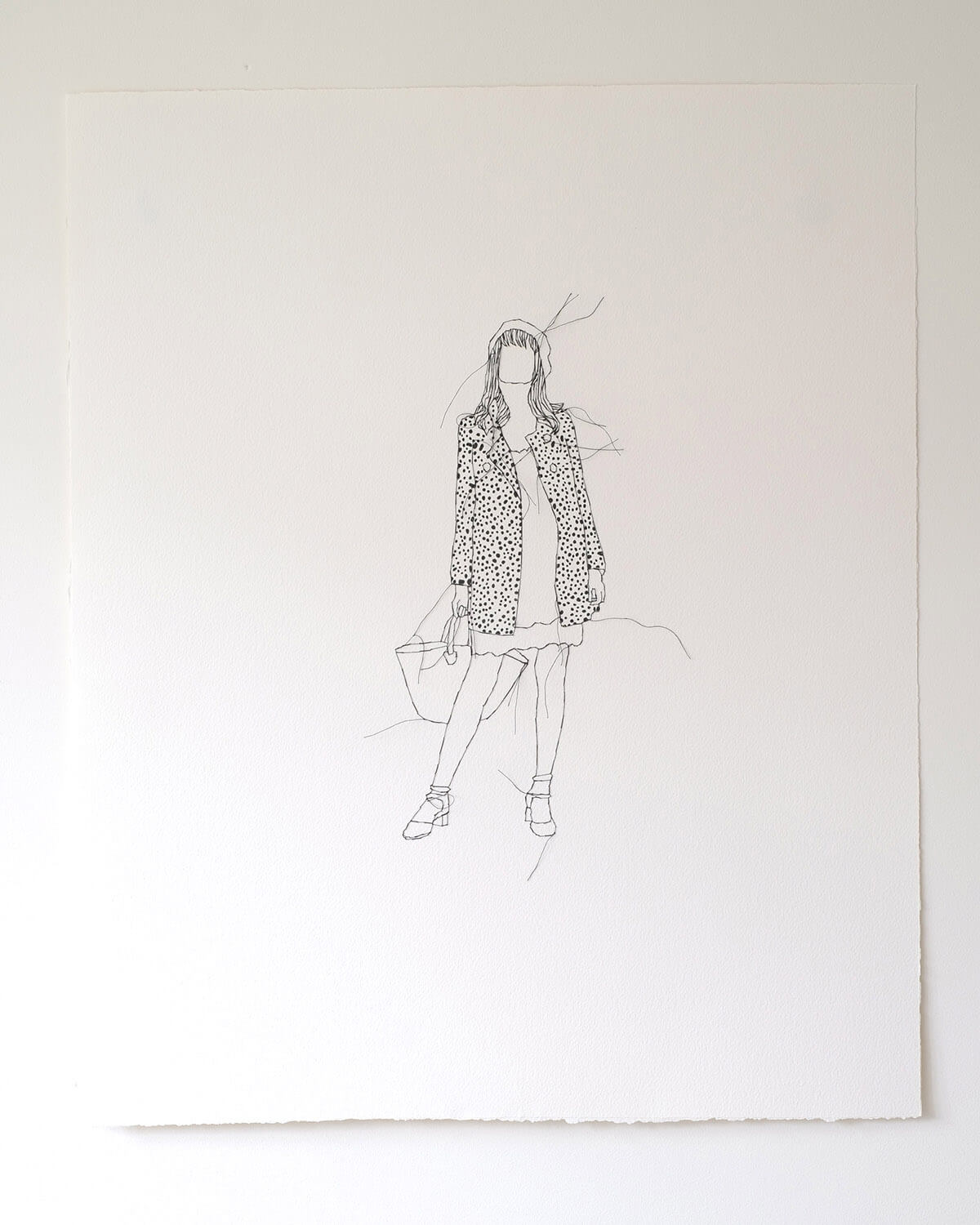 Unique 1/1 original hand-stitched and hand-drawn illustration. A combination of black ink and black thread on paper.