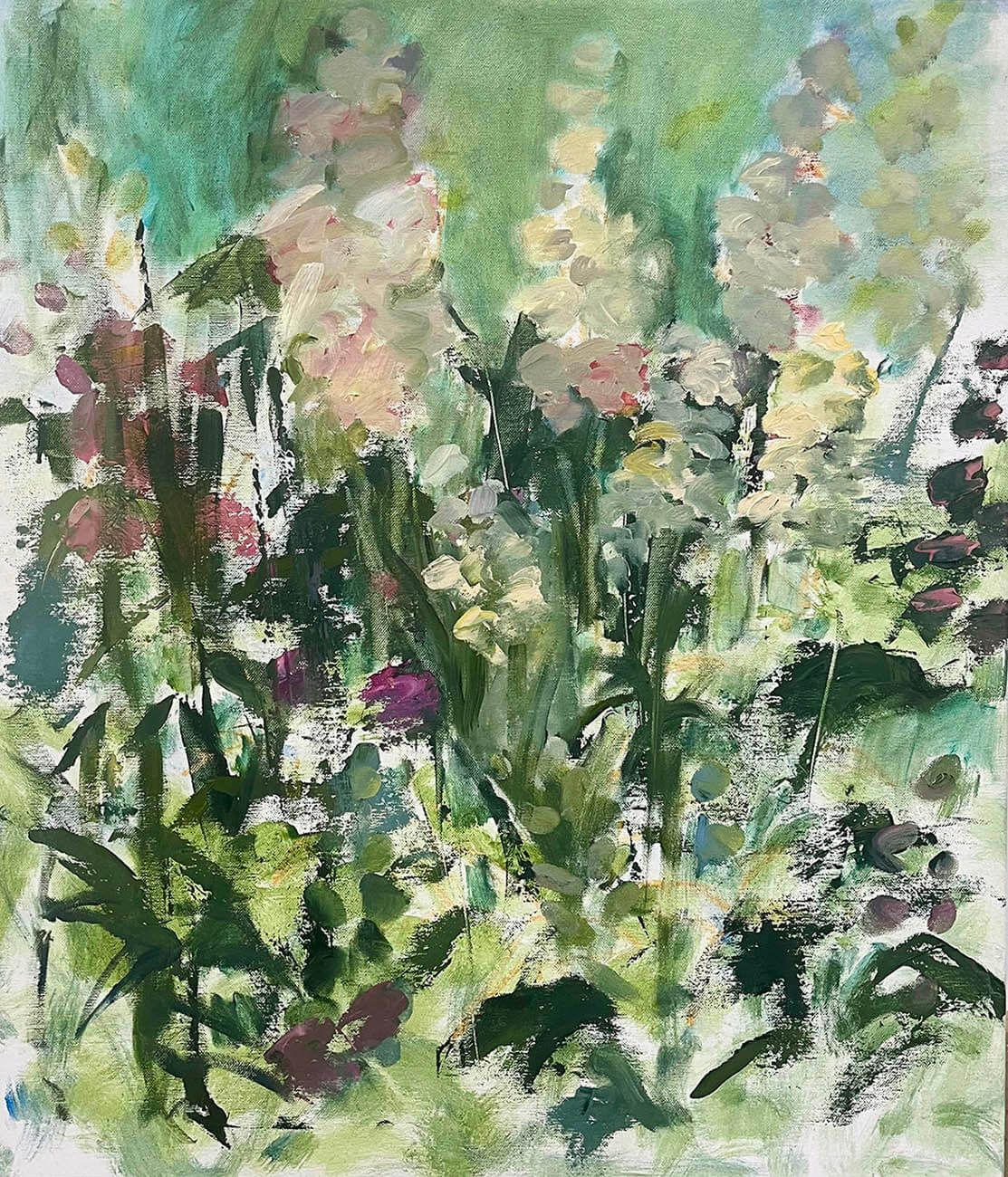 Painting on aluminium, wood and canvas, Caroline’s colour palette immediately conjures up memories of nature, sea, rocks, sky and above all light. There is a sense of drama and energy in these paintings, created by moving the paint vigorously across the surface with brush and palette knife. This is an artist who has put her trust in colour and its ability to generate air and light within an abstract framework. A painter of music as well as landscapes Caroline’s paintings have a rhythm and harmony that belies their energy.
