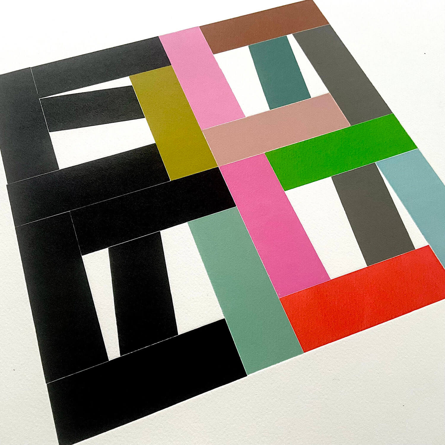 Some of his prints are made by rolling and then removing areas of pure flat colour from the plate, others involve more painterly gestures. In addition, he often uses hand or laser-cut stencils either to hold or conceal areas of ink, which add a further embossed dimension to the prints. Occasionally the prints include collaged elements.