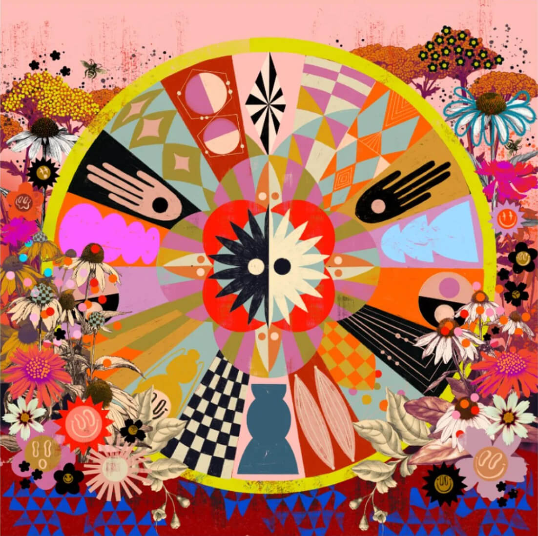 Her work is heavily influenced by music, from the styling and art direction of 1970s Jazz and Soul, to the passion and ebullience of Gospel and Disco. She takes musical aspects and works to synthesise them into visual form, working towards distilling the vibrancy of music into a ‘music for the eyes’. More broadly, she aims to impregnate her work with its own unique soul, through harnessing a blend of spirituality, culture, the cosmos and mother earth.
