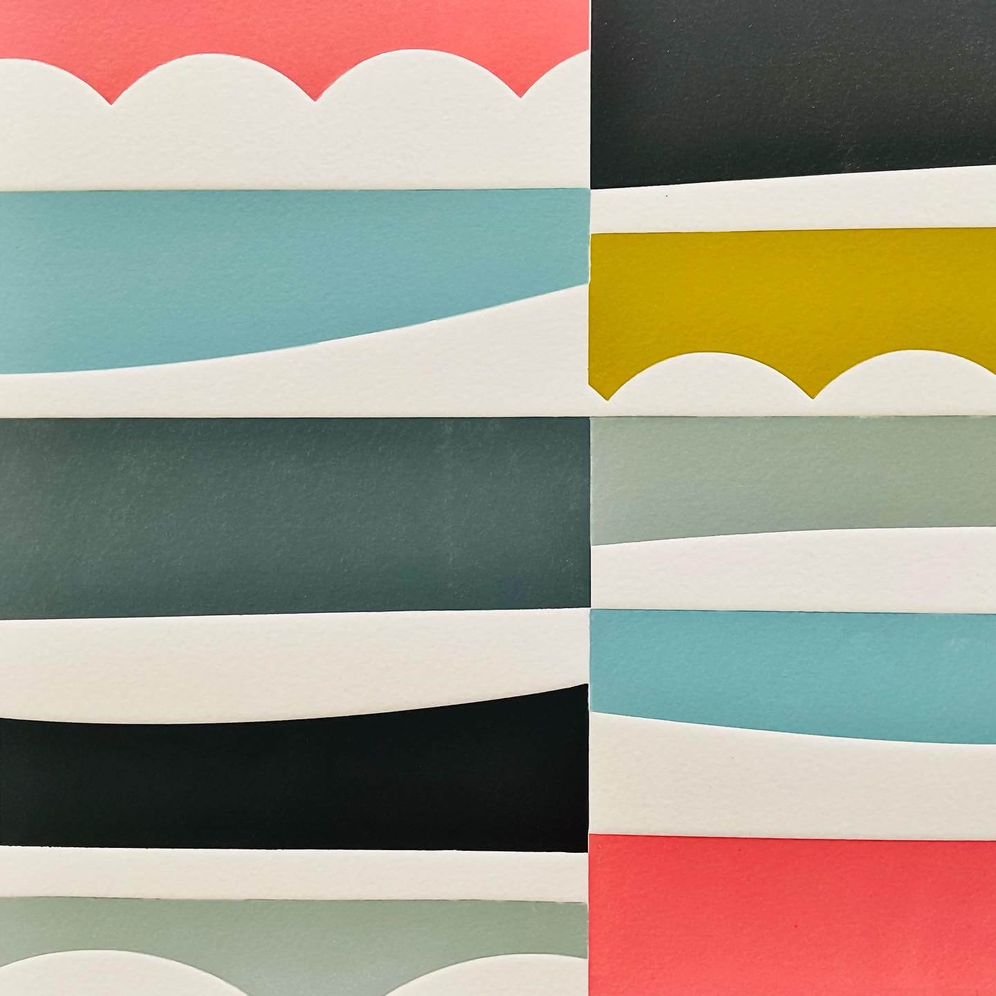 Some of his prints are made by rolling and then removing areas of pure flat colour from the plate, others involve more painterly gestures. In addition, he often uses hand or laser-cut stencils either to hold or conceal areas of ink, which add a further embossed dimension to the prints. Occasionally the prints include collaged elements.