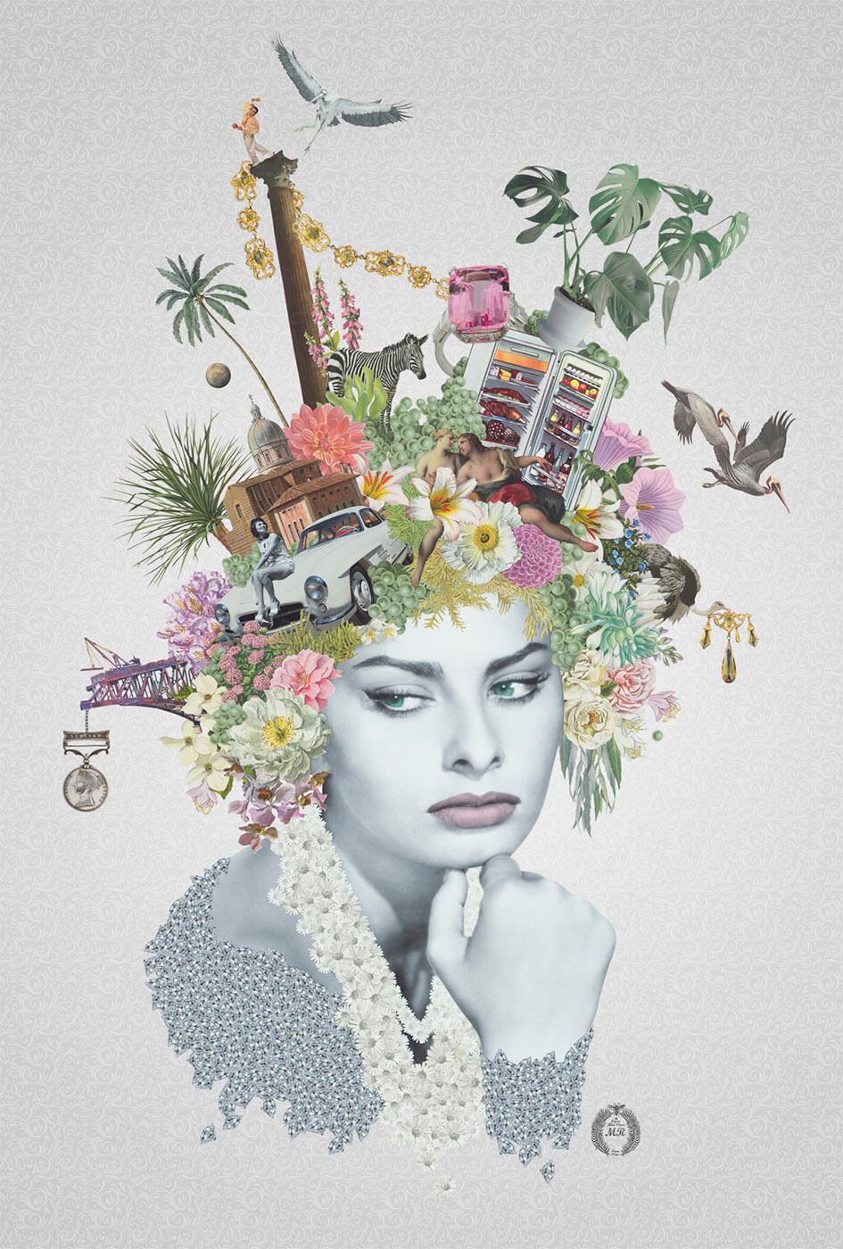 Maria Rivans is a contemporary British artist, known for her scrapbook-style collage aesthetic. A mash-up of Surrealism meets Pop-Art, Rivans’ work re-appropriates vintage ephemera to create fantastical worlds of the imaginary, each one suffused with vivid colour, arresting imagery, intricate detail, and finished with a dusting of subtle humour.