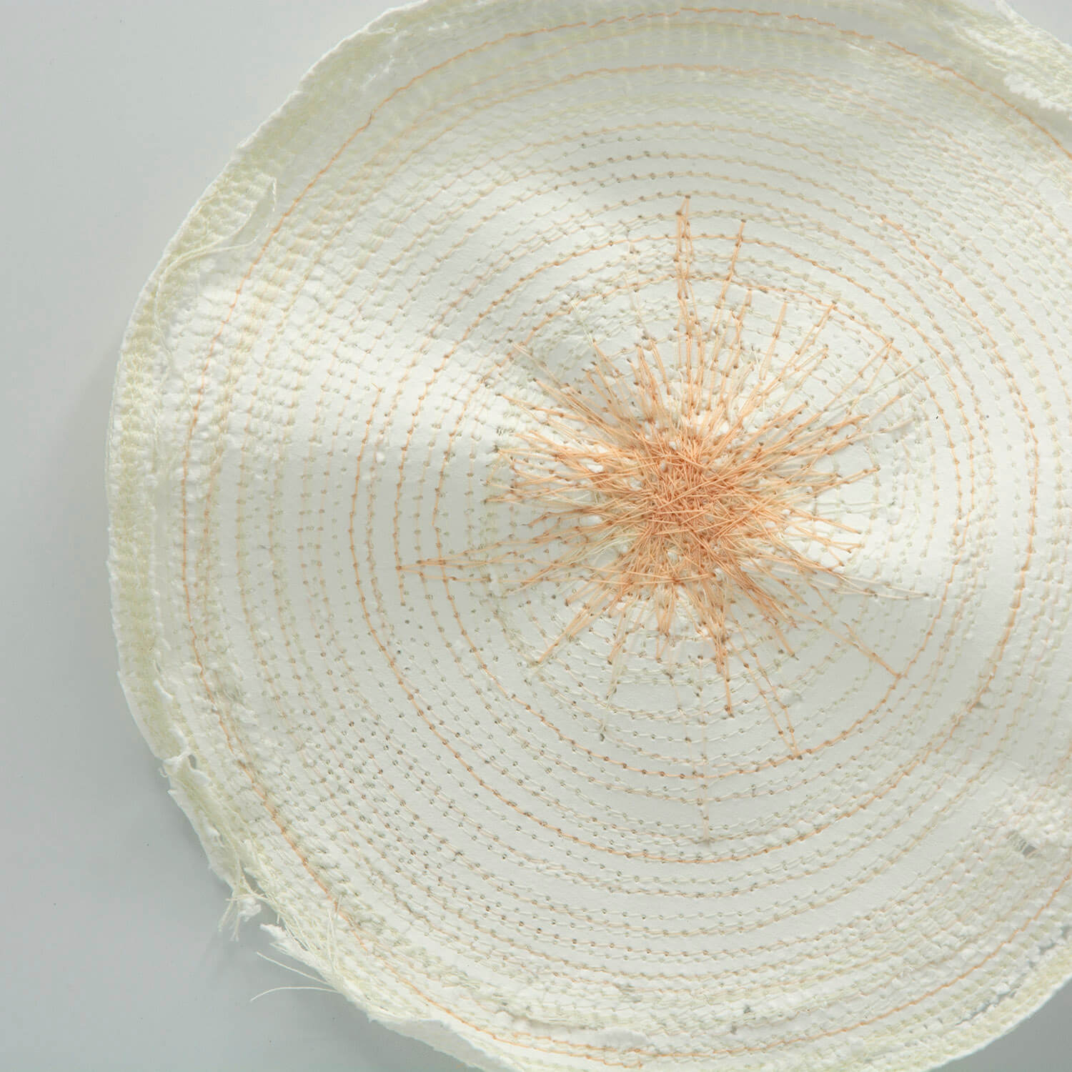 'While working on this series, I have been thinking about resilience, repair, and transformation - all relevant themes for our contemporary moment. The process is meditative and grounding, helpful during a year when much has felt out of our control. I love the promise and honesty of visible mending, even in materials as simple as paper and thread.'