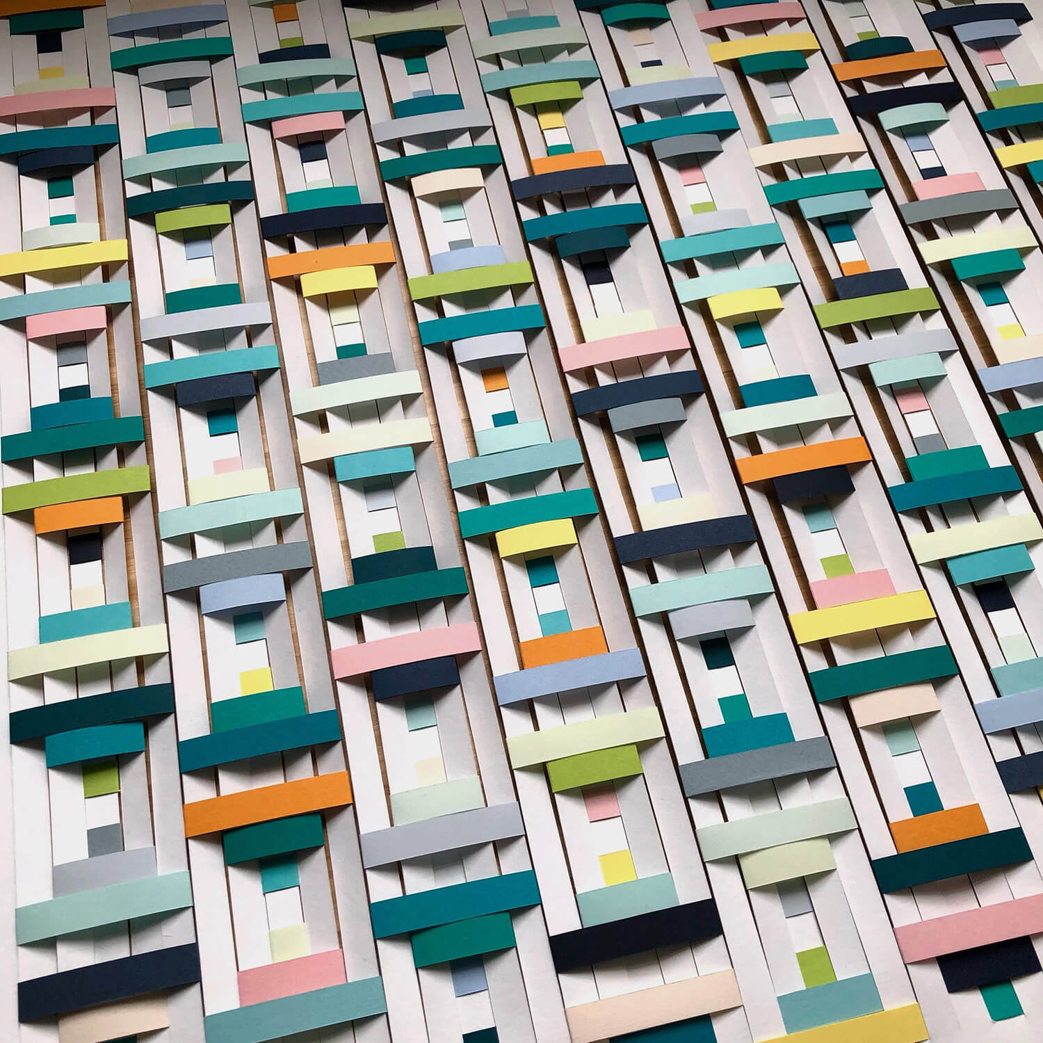 +Naomi creates work primarily with paper which she cuts, folds, layers and weaves by hand. Her works have lively, textured surfaces and she regularly incorporates mark-making with inks and paints. Her practice draws on the techniques and processes used in textiles - she explores their colours and patterns alongside those she finds in the built and natural environments. She exhibits her work in the South West, across the UK and overseas. Naomi is a Royal West of England Academy Network Artist, a member of the Paper Artist Collective and featured as a master artisan in the Michelangelo Foundation’s Homo Faber Guide.