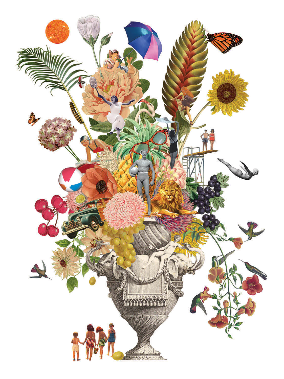 Maria Rivans is a contemporary British artist, known for her scrapbook-style collage aesthetic. A mash-up of Surrealism meets Pop-Art, Rivans’ work re-appropriates vintage ephemera to create fantastical worlds of the imaginary, each one suffused with vivid colour, arresting imagery, intricate detail, and finished with a dusting of subtle humour.