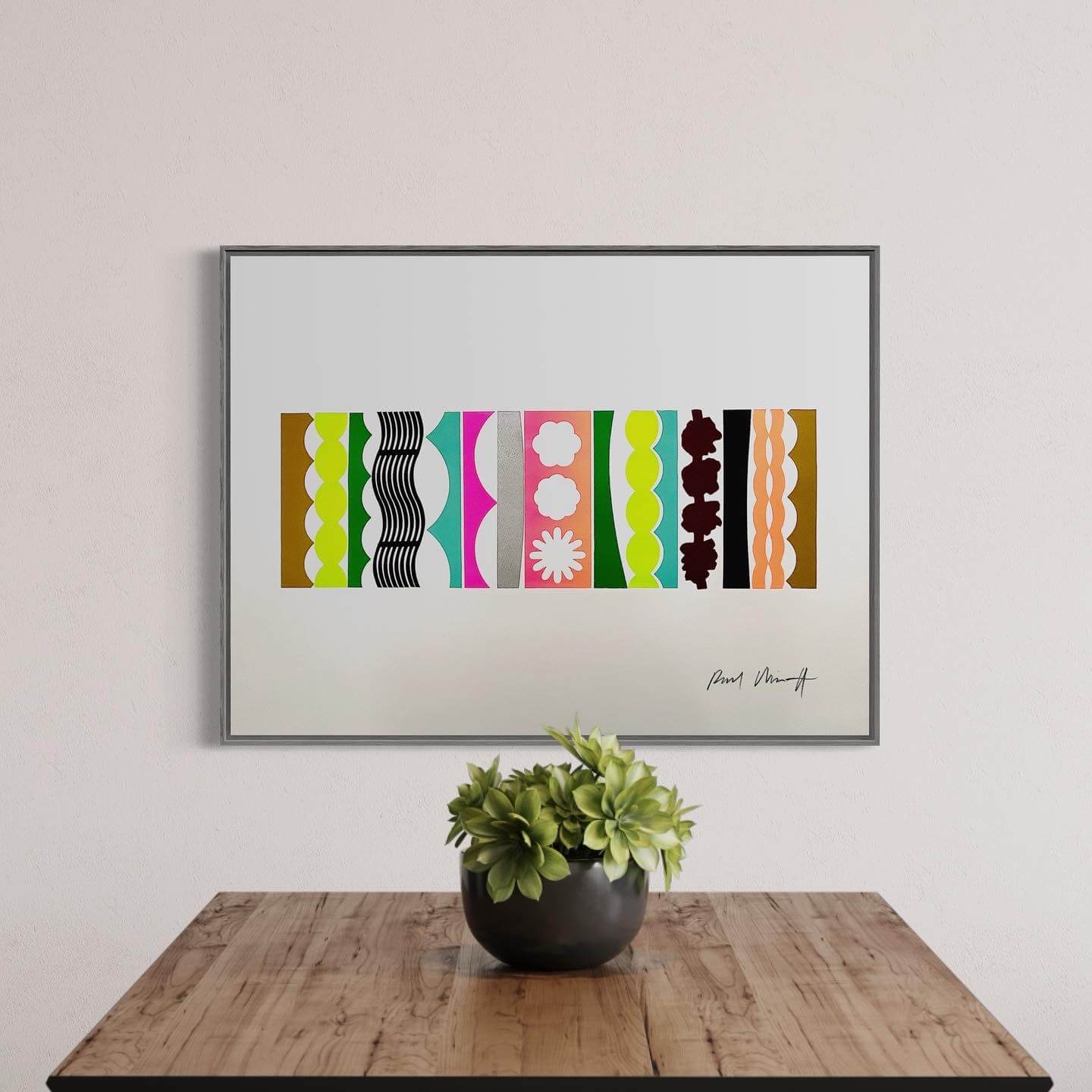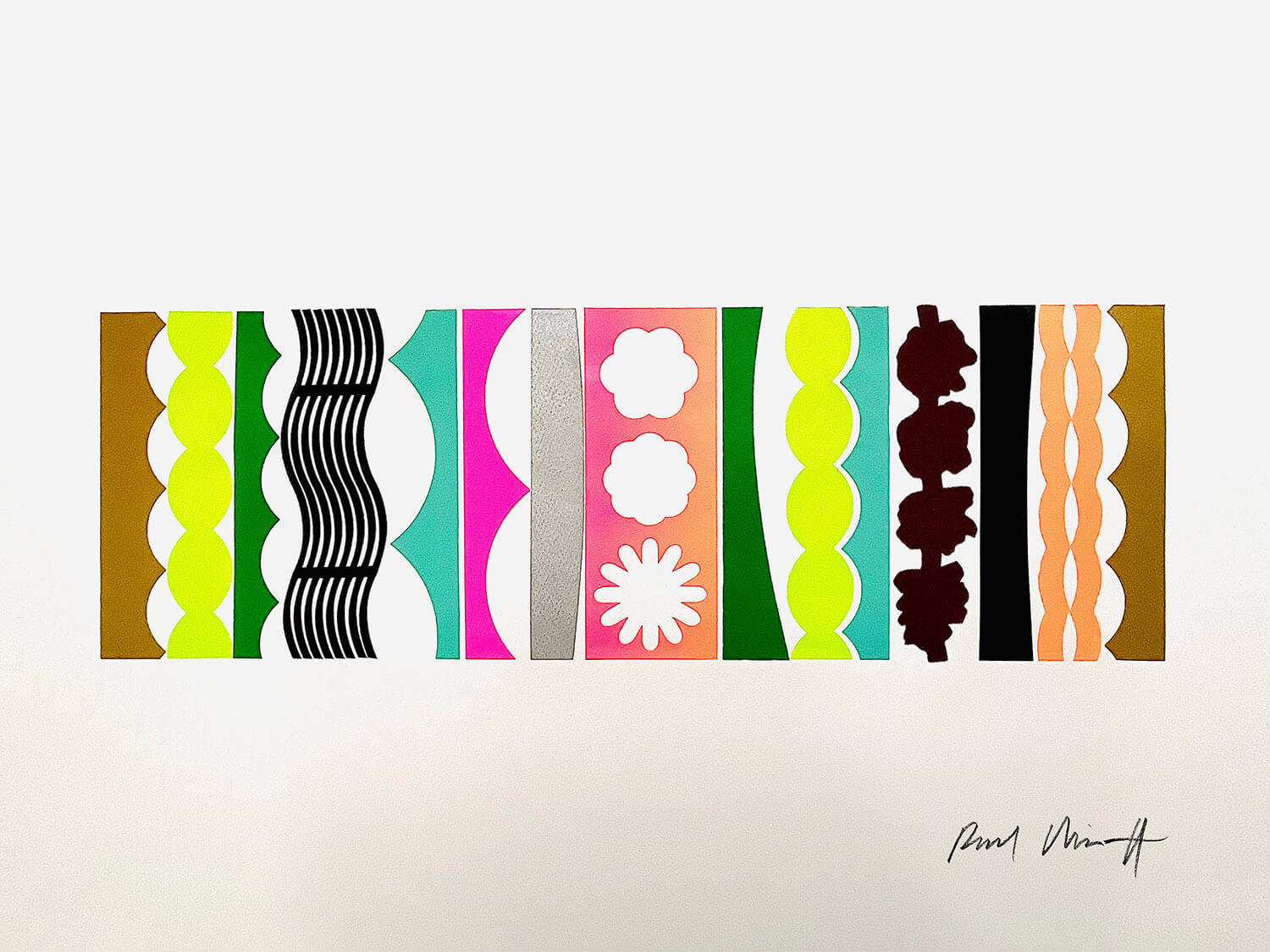 In Paul Minott's words: “Ultimately, my monoprints are all about experimentation. It’s like using an etching press to paint pictures in the dark; the magic that occurs between the blankets can never be entirely known beforehand, and one feels one’s way with each successive stage. Setting out with only a slight notion, often just a shape or a colour, one sets in motion a sequence of events that take on a life of their own. A finished print is resolved when the components coexist in either conflict or harmony. I never know which until it’s over, when it finally suggests something that was there all along.”