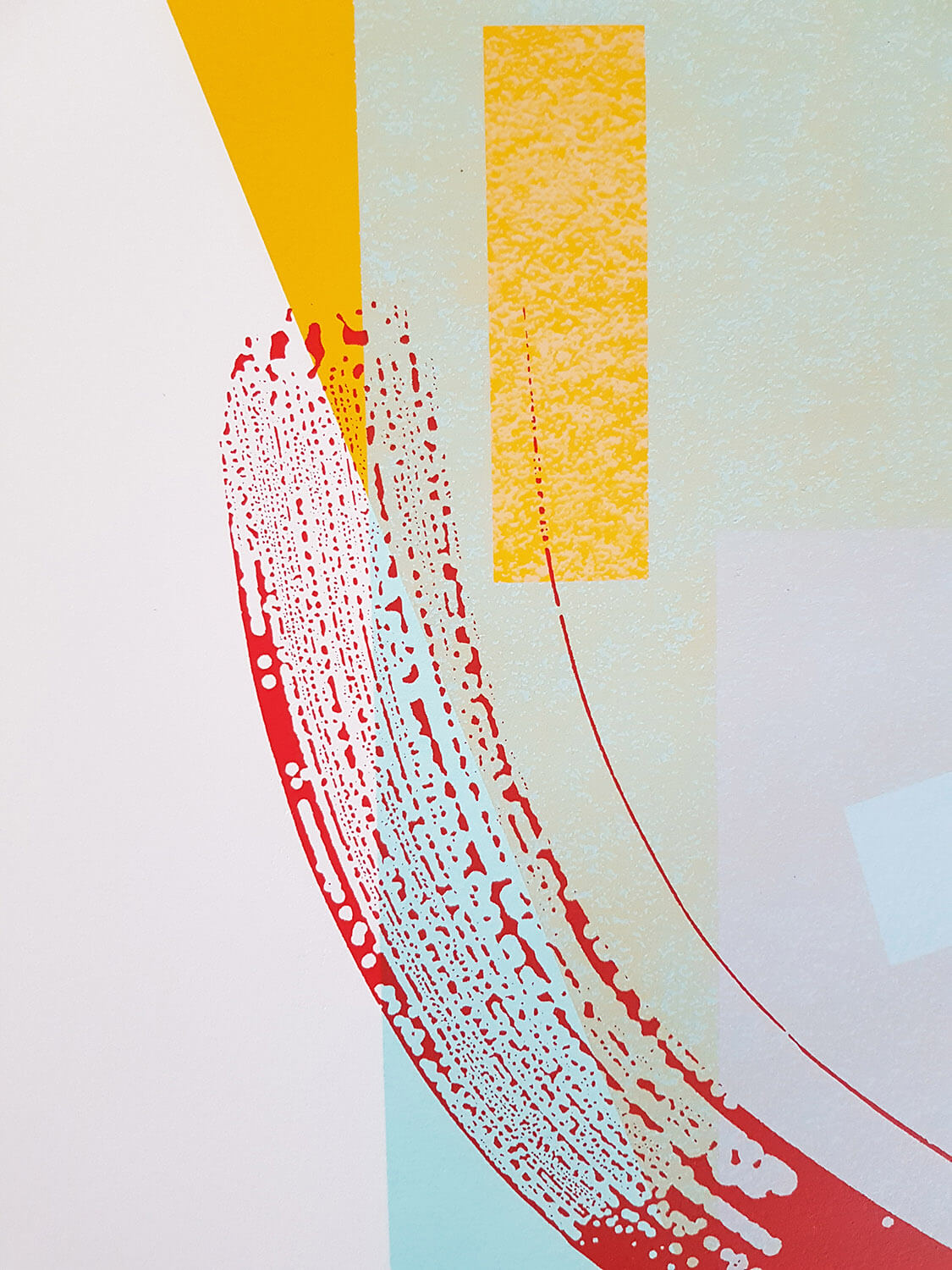 Fuelled by a love of colour, form and architecture, Josie’s screenprints combine bold block colours, textural elements and fluid marks to create work that’s energetic and playful. Her inspiration comes from the artists Ben Nicholson, Robert Rauschenberg and Anni Albers, and movements such as the Bauhaus and Brutalism.
