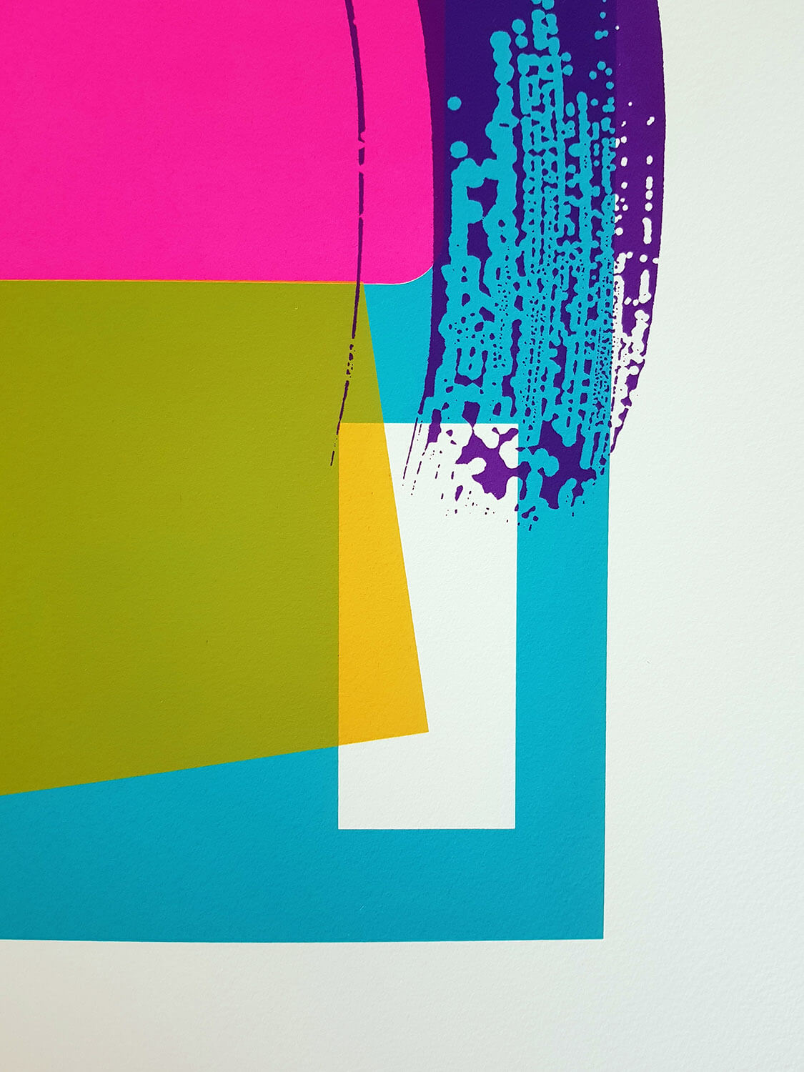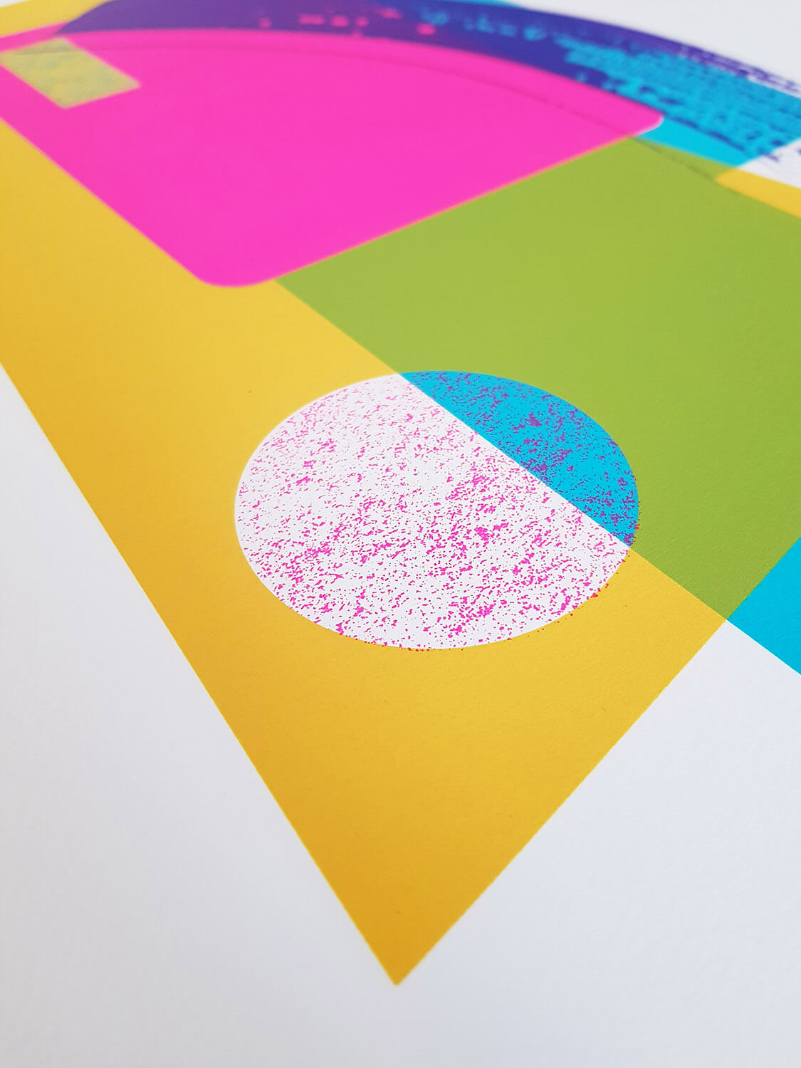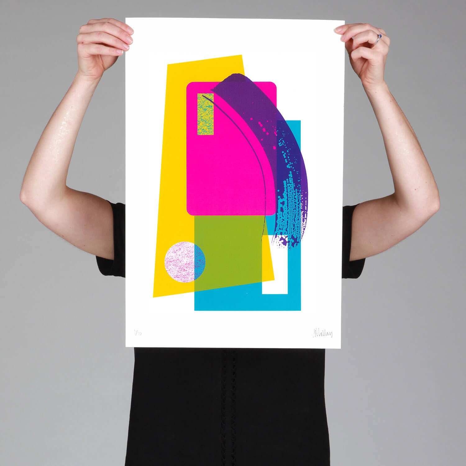 Fuelled by a love of colour, form and architecture, Josie’s screenprints combine bold block colours, textural elements and fluid marks to create work that’s energetic and playful. Her inspiration comes from the artists Ben Nicholson, Robert Rauschenberg and Anni Albers, and movements such as the Bauhaus and Brutalism.