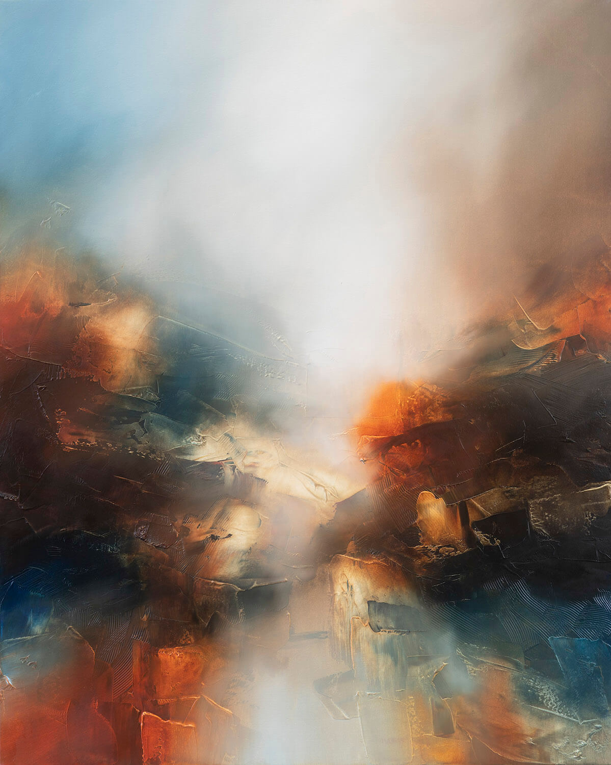 “Occasionally I refer to photography as a starting point and as a way to engage with the surface and begin the initial mark-making process. After this point, everything is an abstract interpretation of the memories I have and places I have experienced. This is all brought together with constant experimenting and I find the works are continuously evolving and influencing the next.