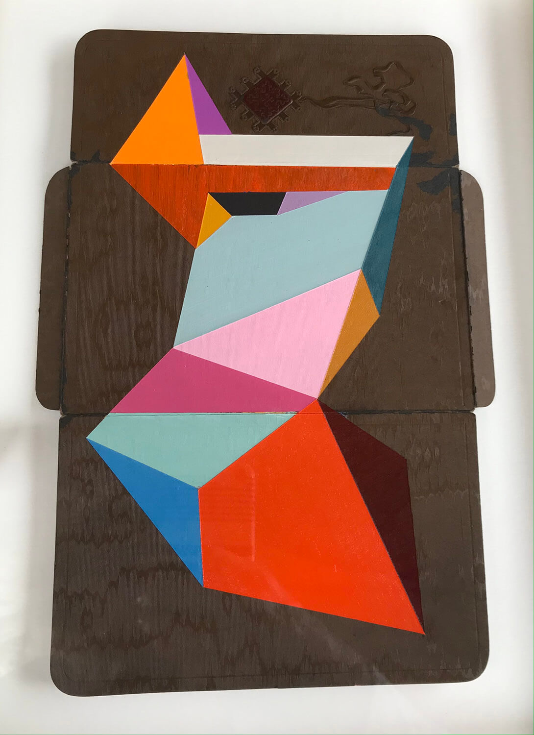 Acrylic on Victorian photo wallet. Float mounted and framed with simple grey frame.