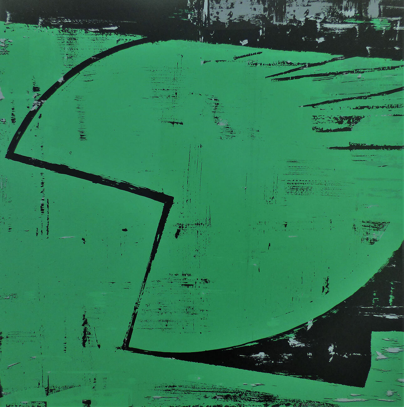 Since moving here in 2015, the environment has rekindled Alexander’s childhood memories of the old farm buildings and trees that were his playground as a child. Cycling and driving around in this new area over the last year has had a profound affect on his work. Buildings, trees and pictorial elements are climbing back into the canvasses to make their home amongst the abstract images. The new work is a collage combining memories from his youth with his new surroundings, as if time is elastic and the past can co-exist with the present. He finds it comforting that rural Sussex has changed so little over the last forty years, although cities are becoming homogenised and increasingly unrecognisable to him.