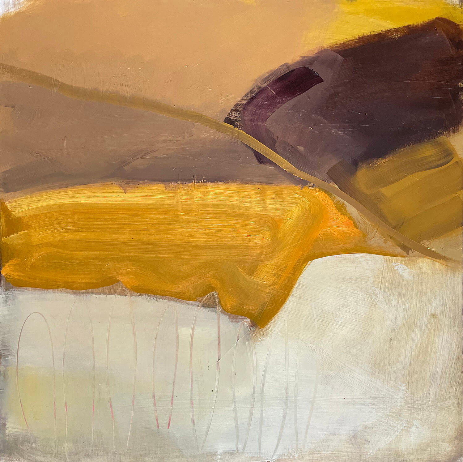 Painting on aluminium, wood and canvas, Caroline’s colour palette immediately conjures up memories of nature, sea, rocks, sky and above all light. There is a sense of drama and energy in these paintings, created by moving the paint vigorously across the surface with brush and palette knife. This is an artist who has put her trust in colour and its ability to generate air and light within an abstract framework. A painter of music as well as landscapes Caroline’s paintings have a rhythm and harmony that belies their energy.