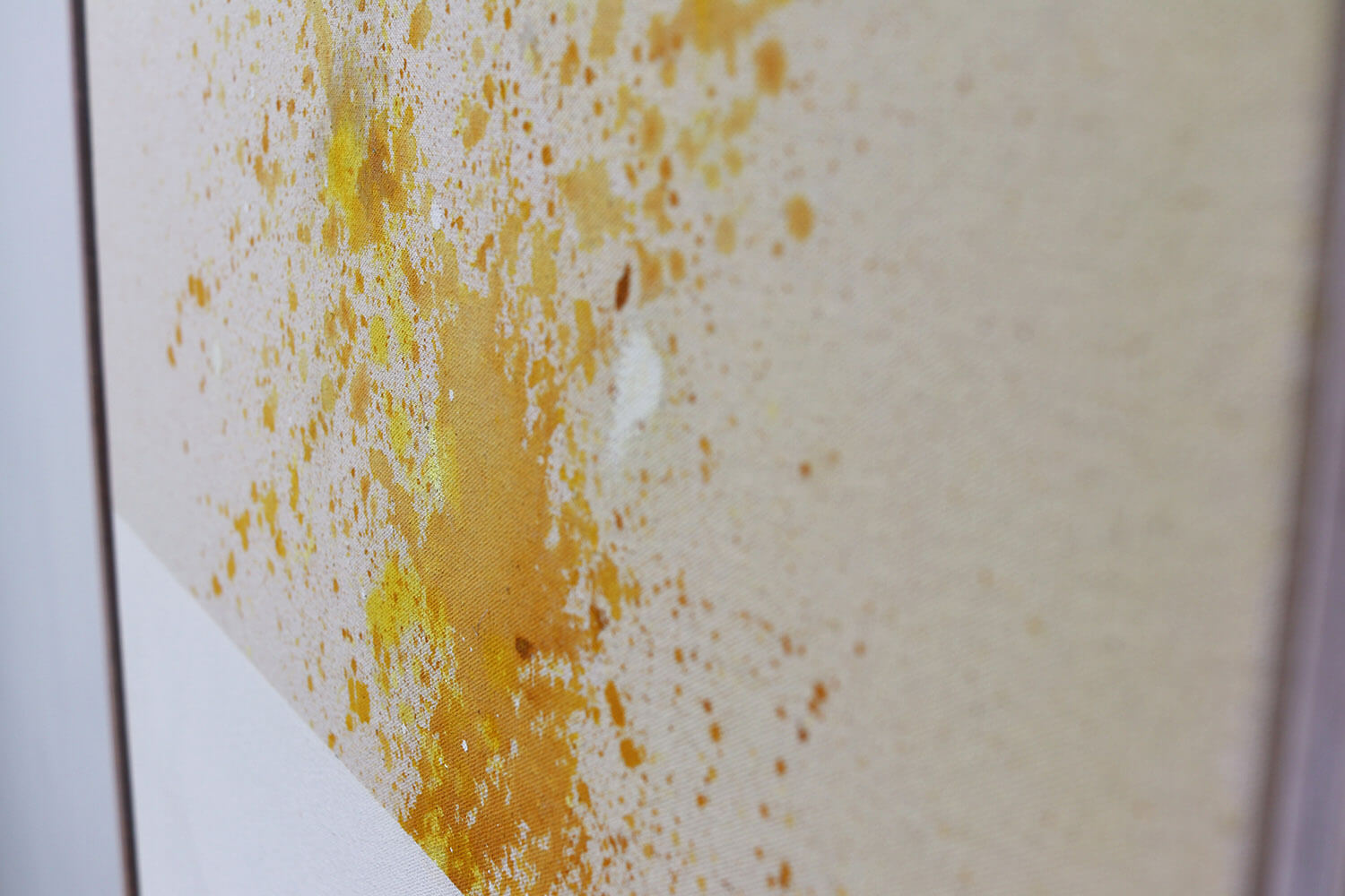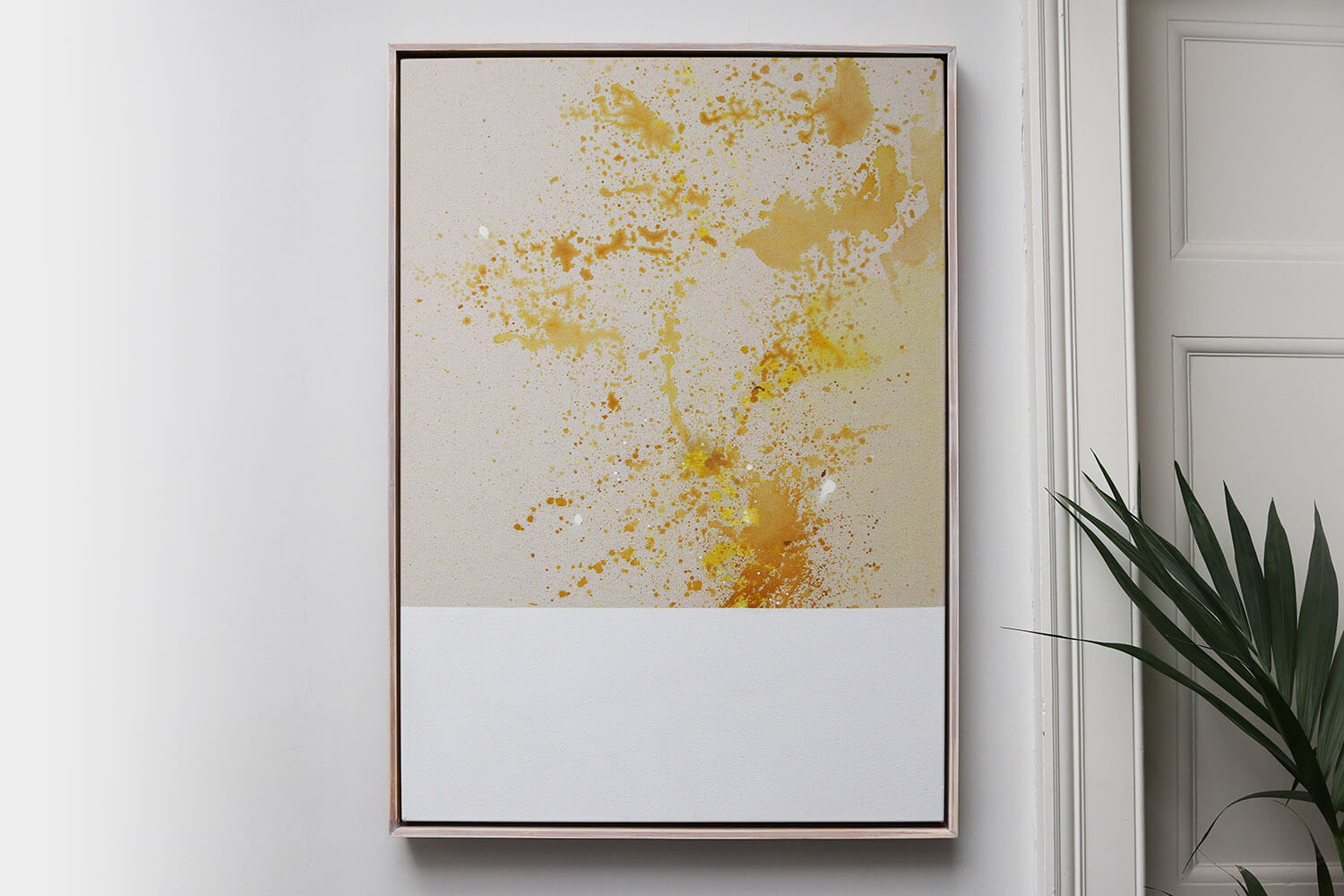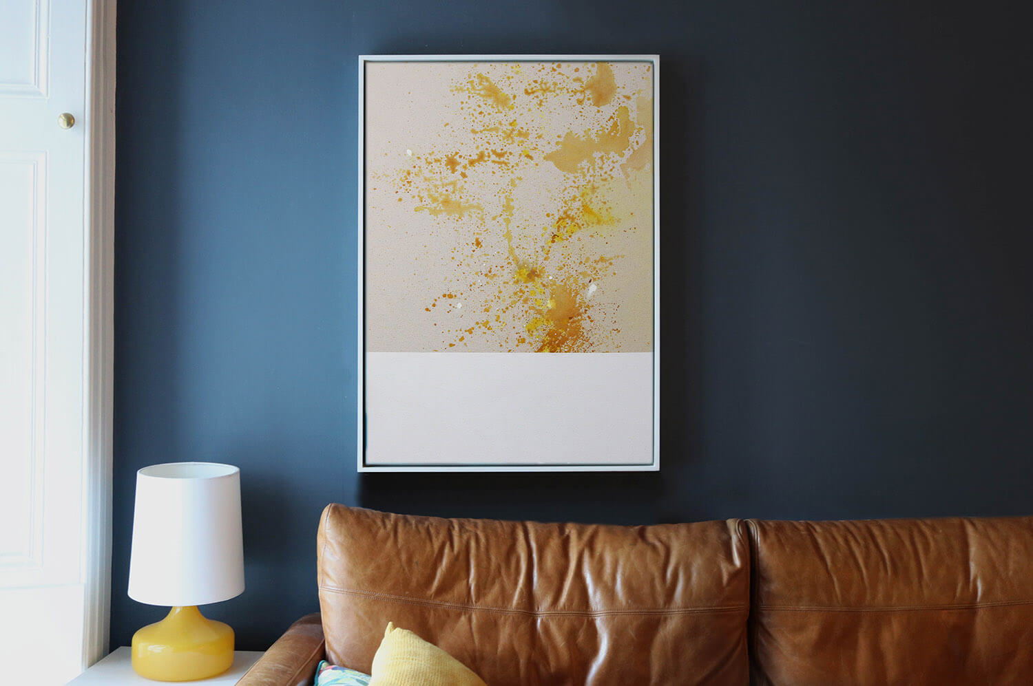 His recent work consists of large scale abstract landscapes on canvas and board alongside smaller more intricate studies on paper. His developed aesthetic is made up of dark weighty tones bringing depth and distance to the canvas. Accents of colour are skilfully used as compositional tools to entice the viewer to weave through layers and perspective.