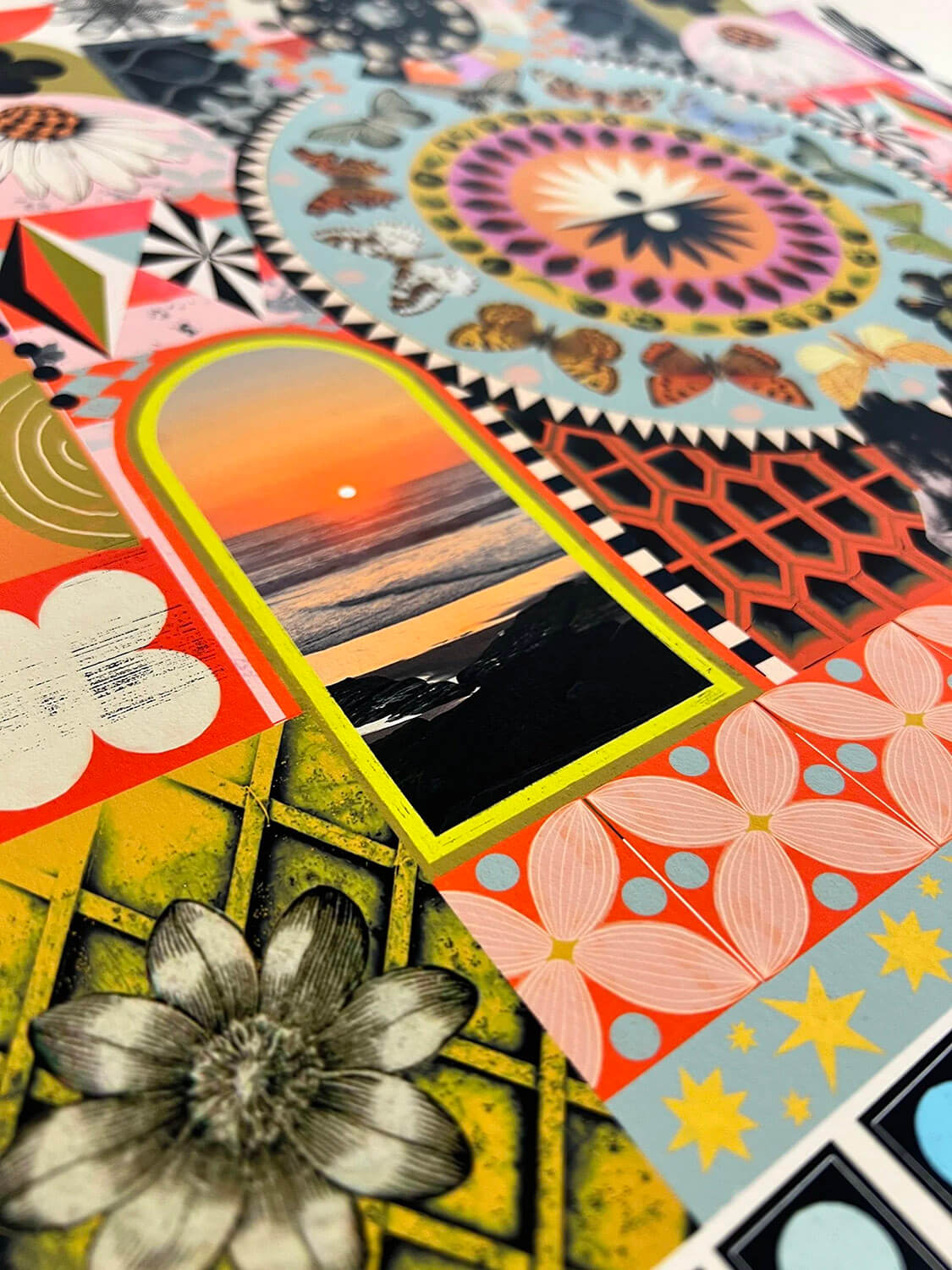 Gallery quality giclee print, highly hand-finished in gold leaf, on 300gsm 100% cotton rag paper with waterbased UV resistant inks. Limited edition of 25.