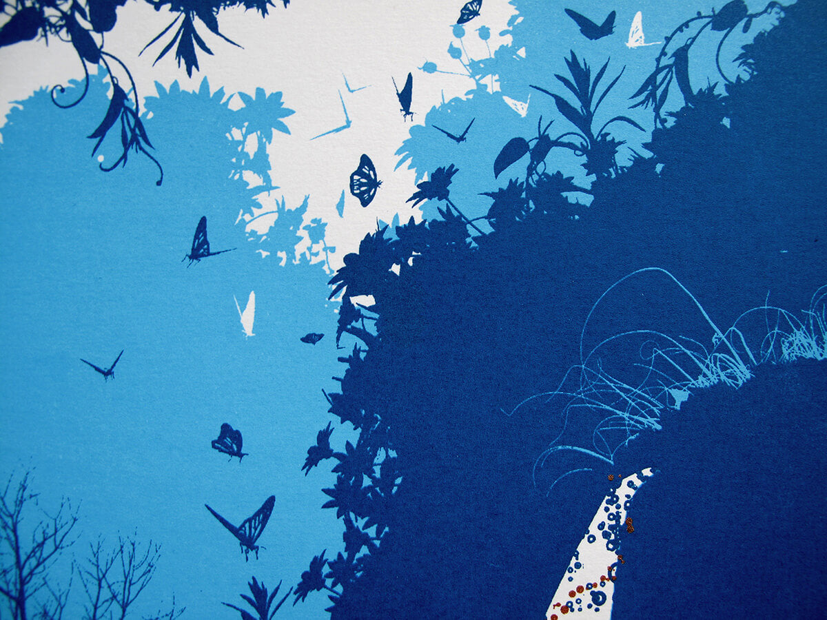 Three colour screenprint with metallic bronze ink, printed on Southbank smooth 250gsm paper.