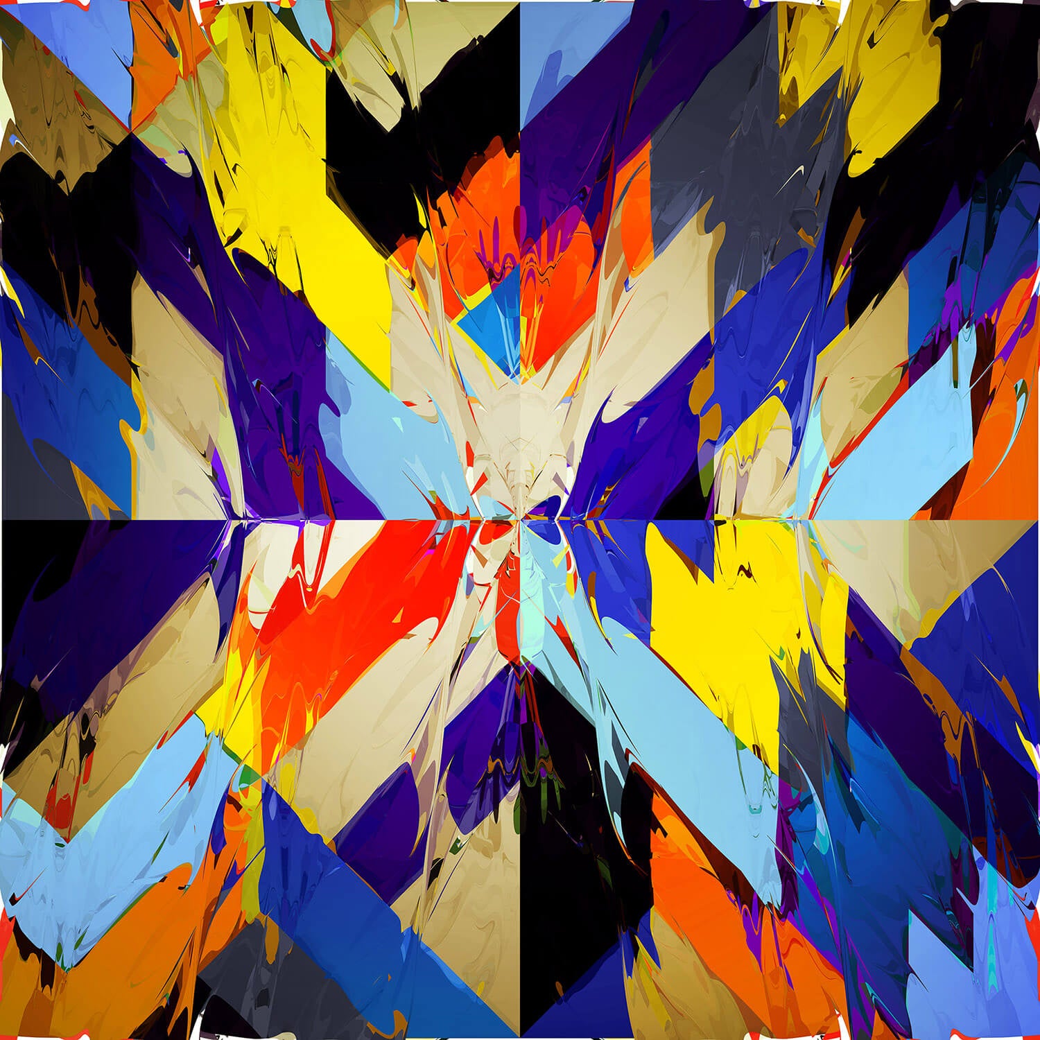 From of a series of six studies that explore the energy contained within a simple X form. Chuck likes the idea that they seem painterly but also sit on a fairly rigid geometric grid - a built in duality that creates some lively tensions - and he enjoyed pushing the digital medium to 'speak with a little more soul'.