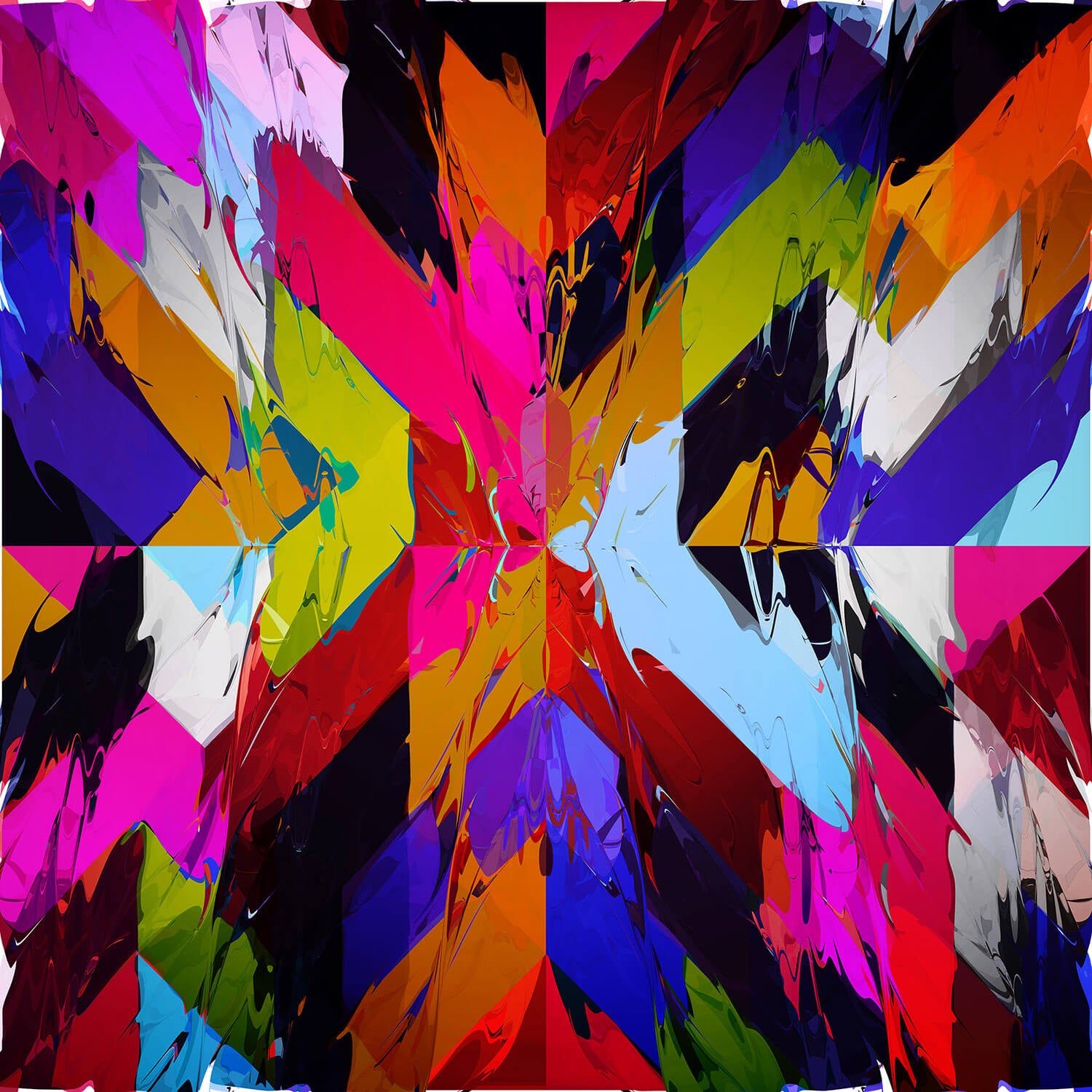 From of a series of six studies that explore the energy contained within a simple X form. Chuck likes the idea that they seem painterly but also sit on a fairly rigid geometric grid - a built in duality that creates some lively tensions - and he enjoyed pushing the digital medium to 'speak with a little more soul'.
